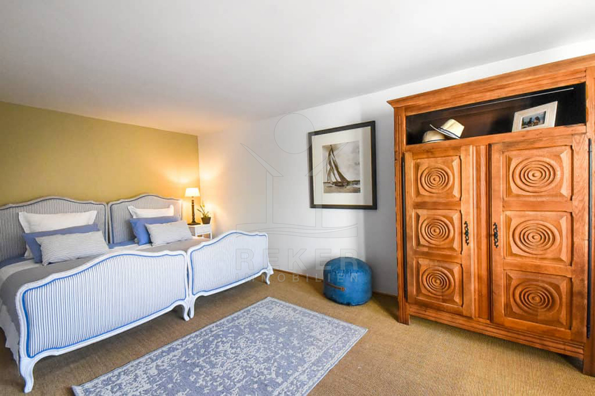 Das Obergeschoss begeistert mit einem offenen Raum, einer Küche und einem Essbereich, die direkten Zugang zur Sommerküche und dem Garten bieten. Hier finden Sie ebenfalls zwei gemütliche Schlafzimmer sowie ein Badezimmer mit Dusche/WC. Ein Zugang zur Terrasse komplettiert diese Etage.
