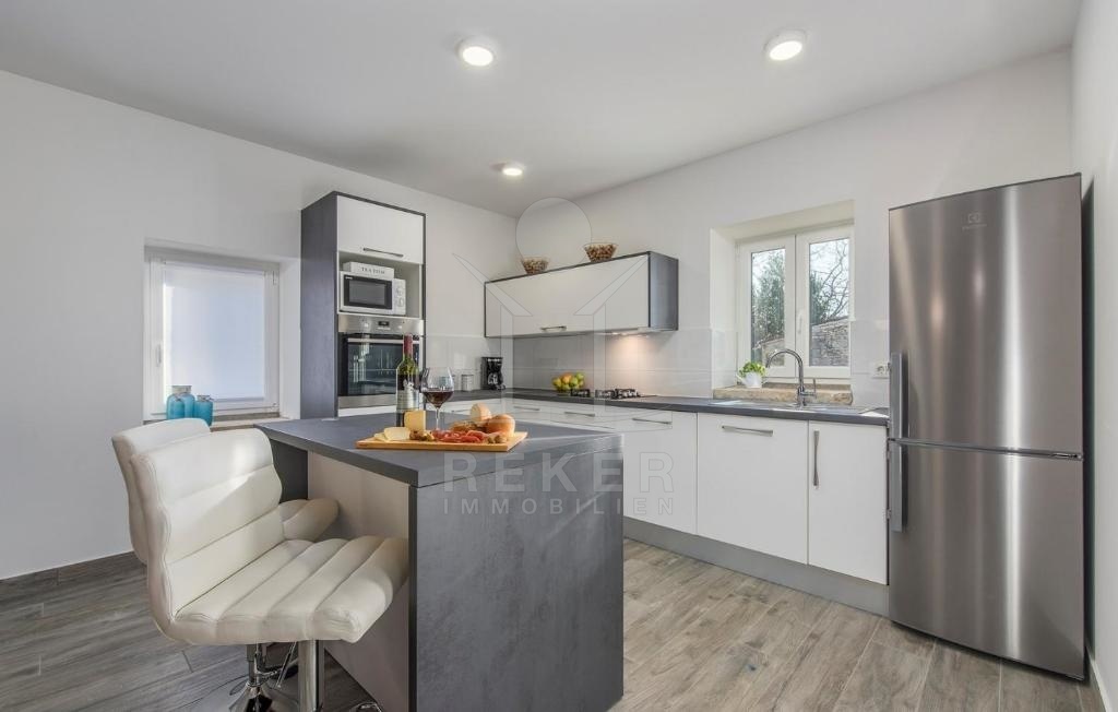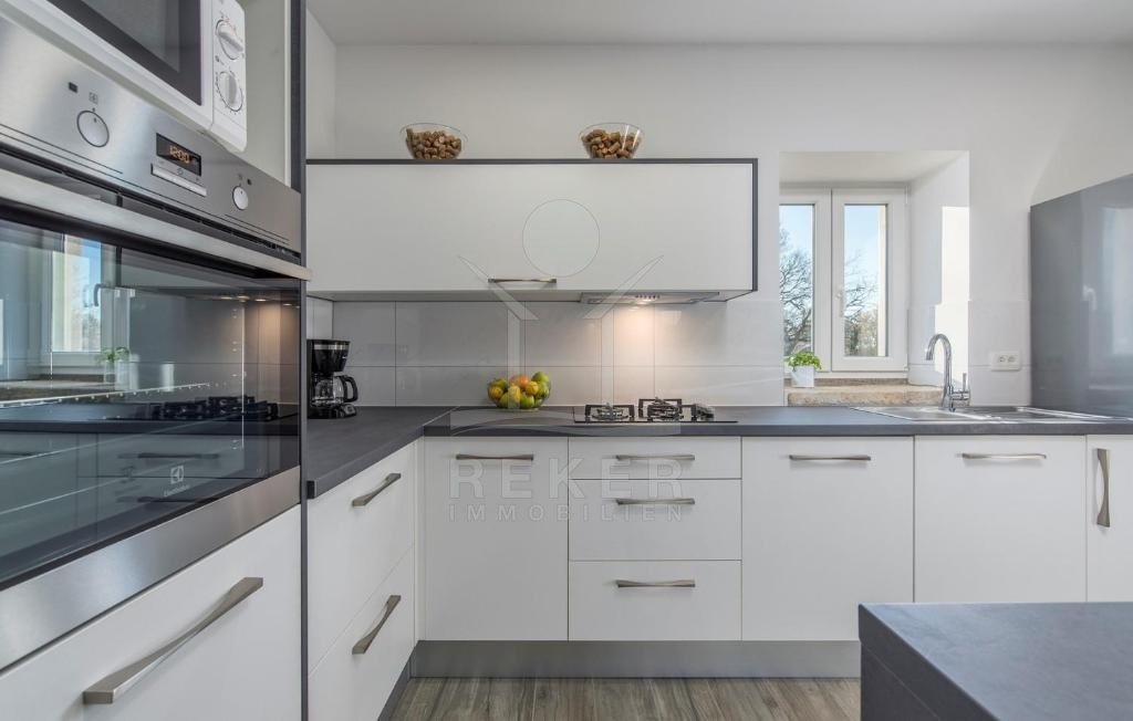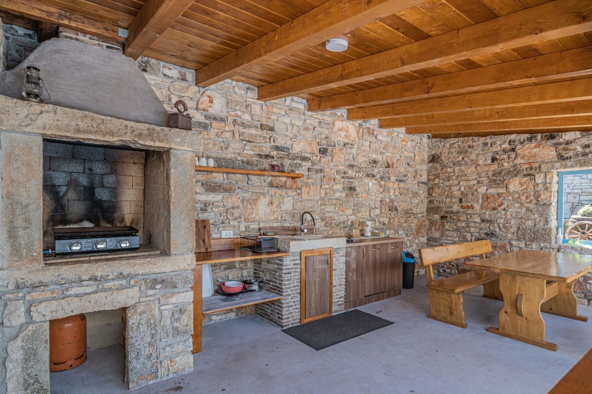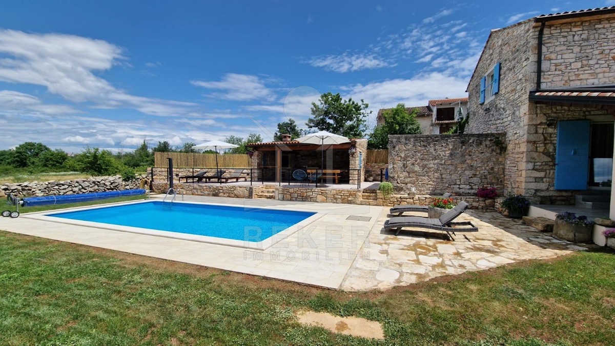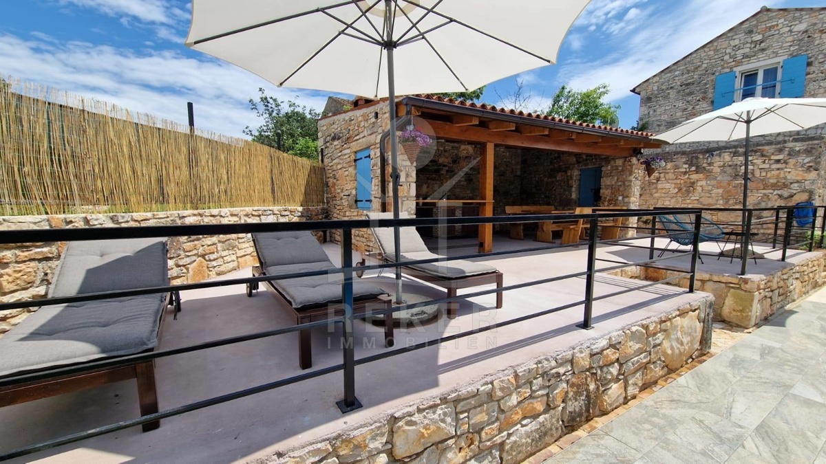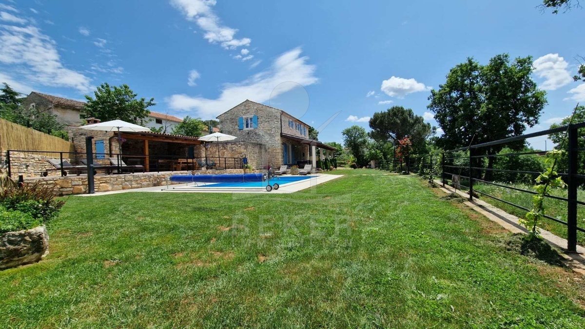 Im Hinterhof der Villa befindet sich ein weiteres traditionelles istrisches Steinhaus, das renovierungsbedürftig ist. Es bietet ein Wohnzimmer, eine Küche, ein Esszimmer, ein Badezimmer sowie drei Schlafzimmer und zwei Tavernen im Erdgeschoss. Es hat das Potenzial, zu einem integralen Bestandteil dieses außergewöhnlichen Anwesens zu werden.