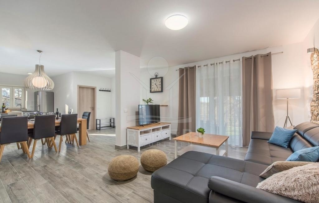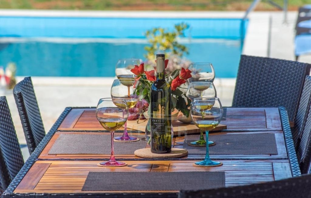 Die luxuriöse Steinvilla befindet sich in der malerischen Umgebung von Sveti Lovreč und strahlt eine ruhige und friedliche Atmosphäre aus. Die ländliche Lage bietet viel Platz und Weitläufigkeit, umgeben von anderen Ferienvillen. Hier können Sie von Ihrem privaten Rückzugsort aus die unberührte Natur und die reizvolle Landschaft genießen. Obwohl die Villa etwas abseits liegt, ist das Meer nur 12 km entfernt und bietet reichlich Gelegenheit für Erholung und Wassersport. Durch die ländliche Lage können Sie die umliegenden Städte und Dörfer erkunden und authentische kroatische Gastfreundschaft erleben.