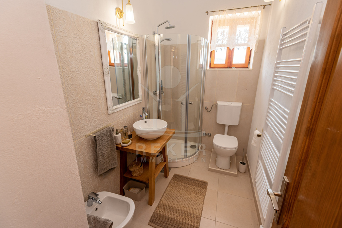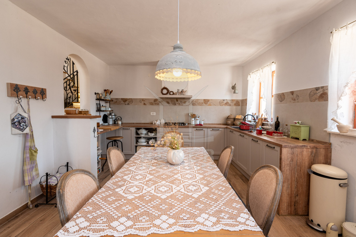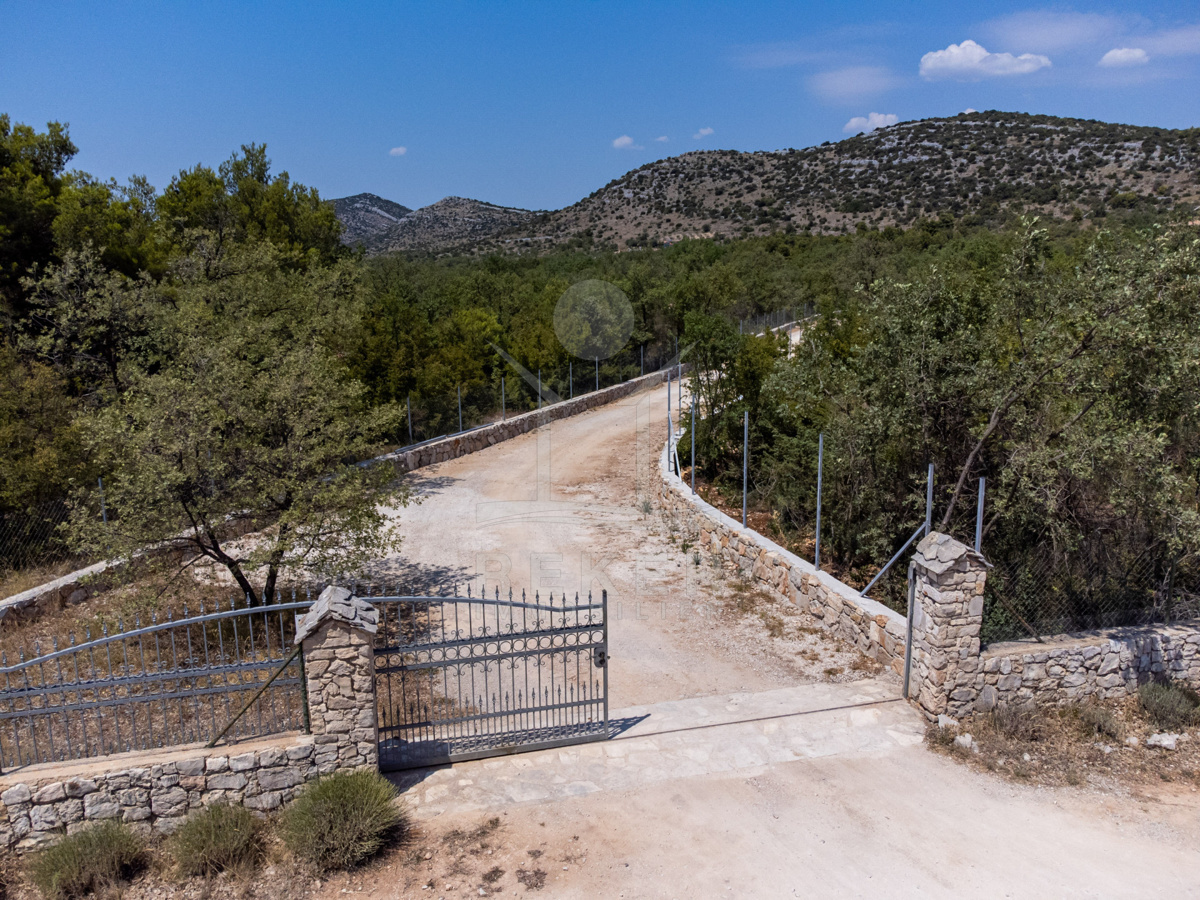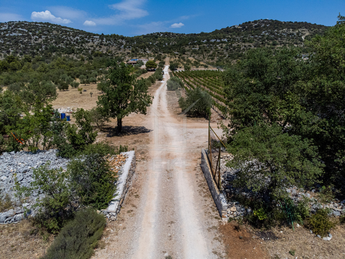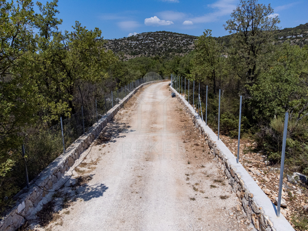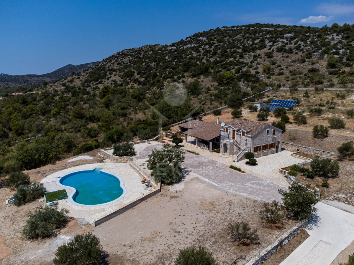 Die Steinhausvilla liegt eingebettet in eine malerische und natürliche Umgebung, umgeben von sanften, bergigen Landschaften. Ruhe und Erholung finden Sie hier inmitten der unberührten Natur. Das Anwesen liegt etwa 7 km vom Meer und den Stränden von Vodice entfernt, während das lebendige Zentrum der Stadt in 6 km erreichbar ist. In unmittelbarer Nähe befinden sich ein Lebensmittelgeschäft sowie Restaurants und Cafés für Ihren täglichen Bedarf. Die Küstenstadt Vodice selbst besticht durch ihre fast 4 km lange Uferpromenade und die malerische Altstadt, in der Sie das mediterrane Flair genießen können. Die flach abfallenden Kieselstrände wie die Plava Plaza bieten ideale Bedingungen für Familien und Wassersportliebhaber. Entlang der Riviera von Vodice erwarten Sie weitere schöne Strände und Buchten, die zum Erkunden einladen. Abends können Sie in den Restaurants entlang der Uferpromenade die köstliche dalmatinische Küche probieren und den Blick auf den großen Yachthafen von Vodice genießen. Die luxuriöse Steinhausvilla vereint exklusiven Wohnkomfort mit der Naturverbundenheit Dalmatiens und bietet somit ein einzigartiges Wohnerlebnis.