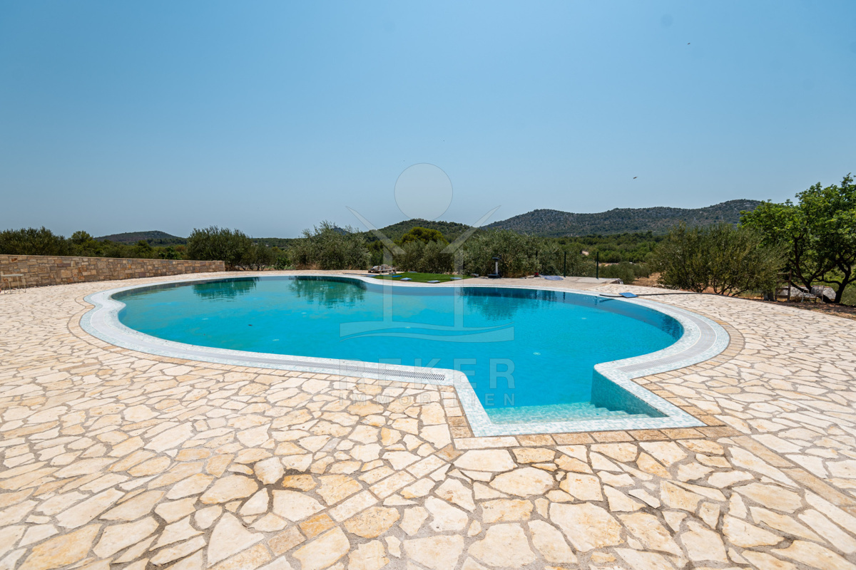 MODERNE STEINHAUSVILLA MIT POOL IN ALLEINLAGE UMGEBEN VON OLIVENHAIN IN VODICE