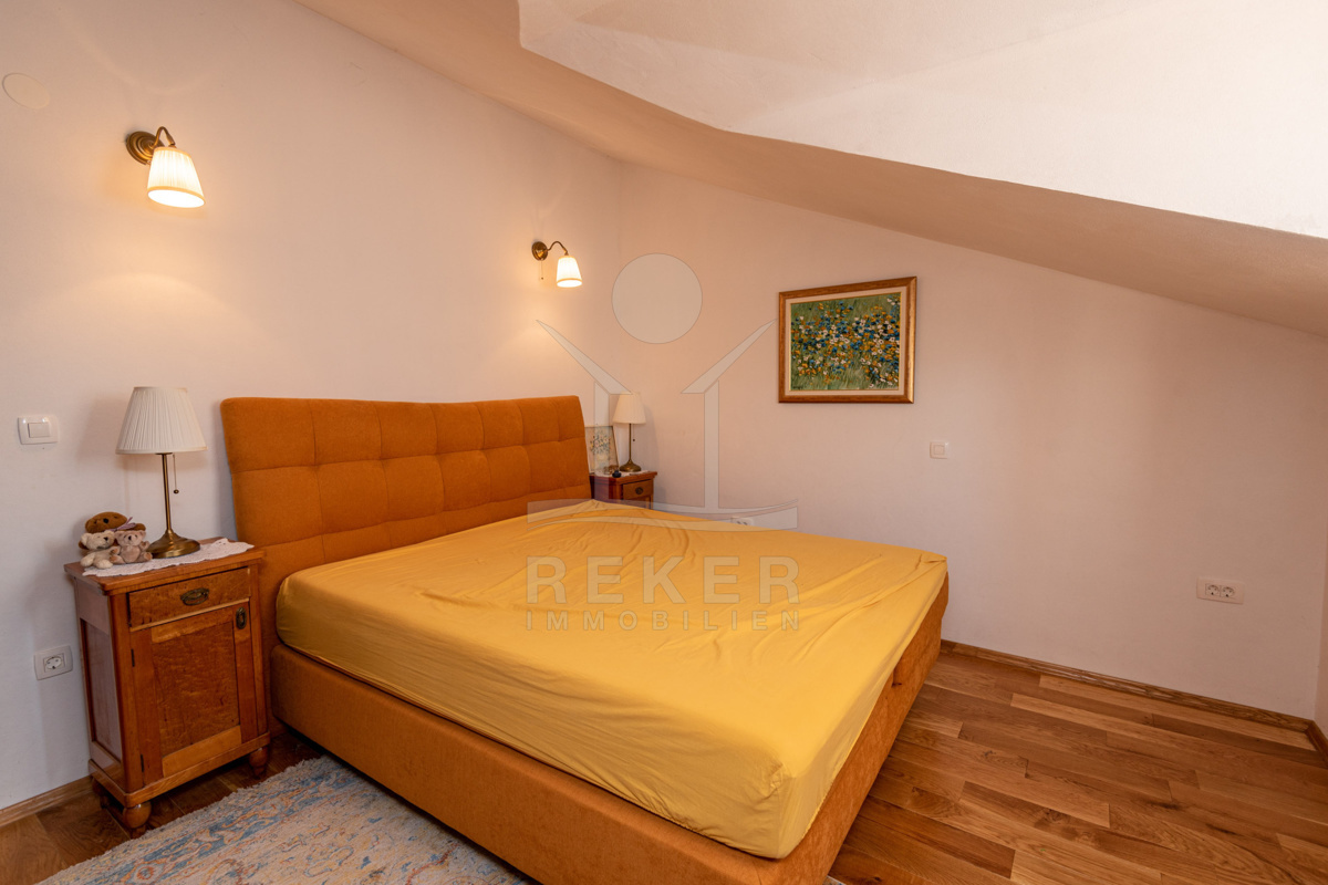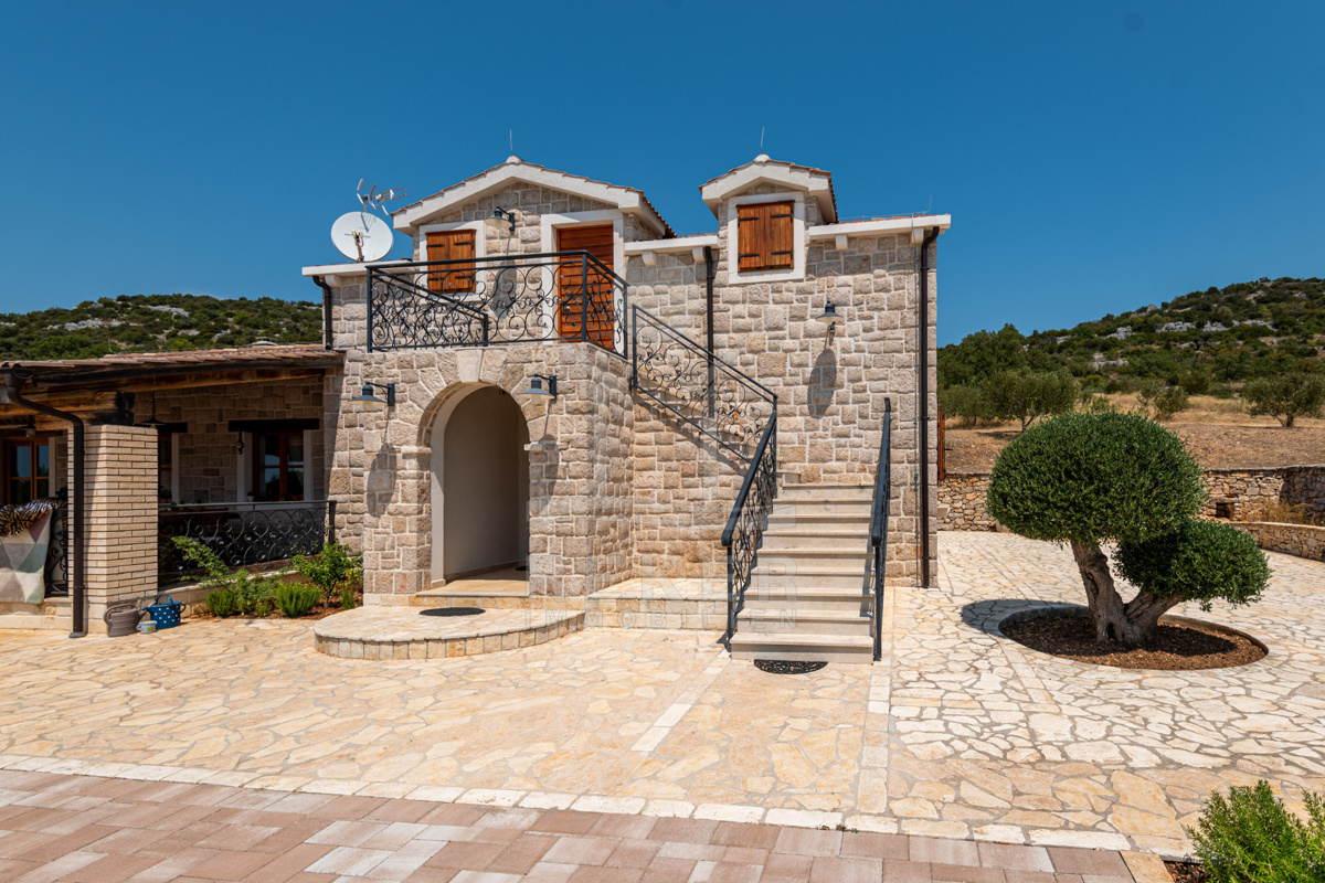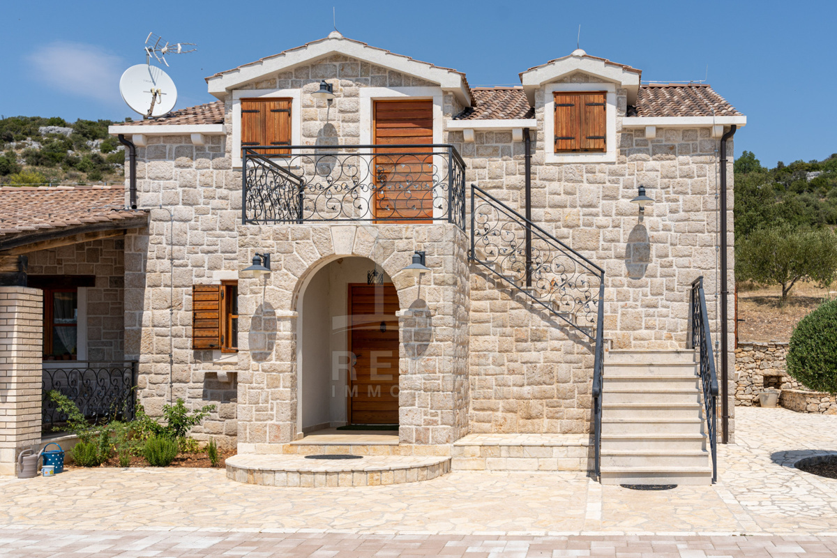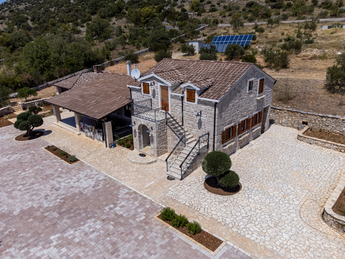 Die Steinhausvilla ist von einer malerischen und natürlichen Umgebung umgeben, geprägt von sanften, bergigen Landschaften. Das Anwesen befindet sich etwa 7 km vom Meer und den Stränden von Vodice entfernt, während das lebendige Zentrum der Stadt in 6 km erreichbar ist. In unmittelbarer Nähe finden sich ein Lebensmittelgeschäft sowie Restaurants und Cafés in derselben Entfernung. Die Küstenstadt Vodice selbst liegt zwischen Sibenik und Biograd na Moru und ist bekannt für ihre fast 4 km lange Uferpromenade und die malerische Altstadt. Besucher können hier das mediterrane Flair genießen, entweder in den ruhigen Gassen der Altstadt oder an der lebhaften Uferpromenade mit Geschäften, Cafés und Restaurants. Der flach abfallende Kieselstrand Plava Plaza ist ideal für Familien und bietet eine Vielzahl von Freizeitmöglichkeiten. Entlang der Riviera von Vodice warten weitere schöne Strände und Buchten auf Erkundung. Abends können Sie in den Restaurants entlang der Uferpromenade die köstliche dalmatinische Küche probieren und den Blick auf den großen Yachthafen von Vodice genießen. Die luxuriöse Villa vereint exklusiven Wohnkomfort mit der Naturverbundenheit Dalmatiens und bietet somit ein einzigartiges Wohnerlebnis.