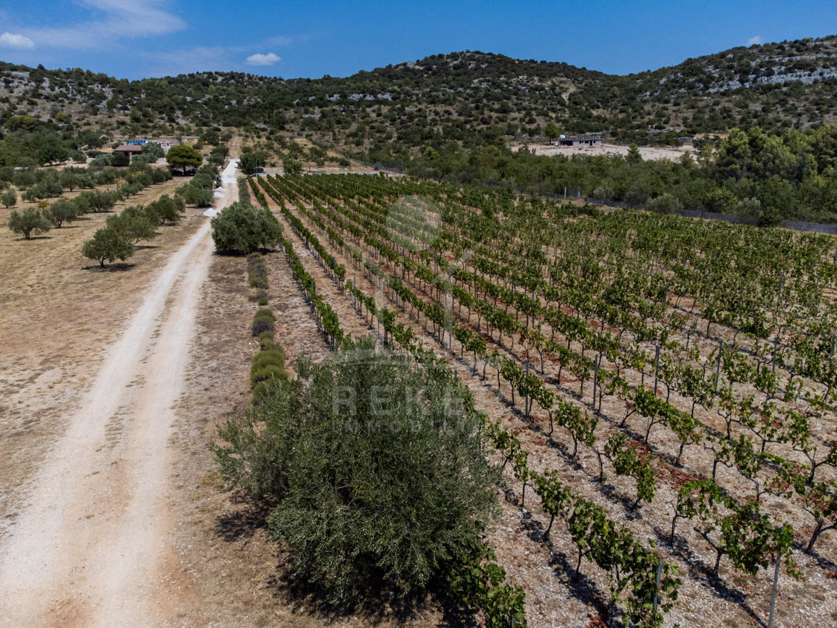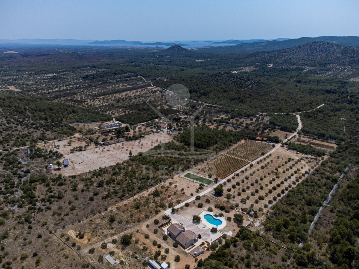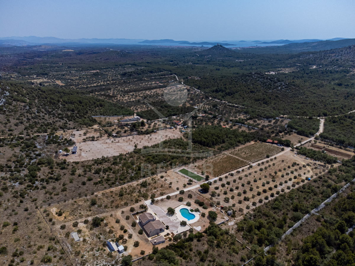 Die Luxus-Steinhausvilla wird von einem riesigen, 45.000 m² großen Grundstück umgeben, das mit einem ca. 1,5 km langen Zaun eingegrenzt ist. Neben einem Tennisplatz, einem Weinberg mit 2000 Rebstöcken und einem Olivenhain mit 500 Olivenbäumen bietet dieses Anwesen ein enormes landwirtschaftliches Potenzial.
