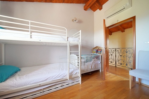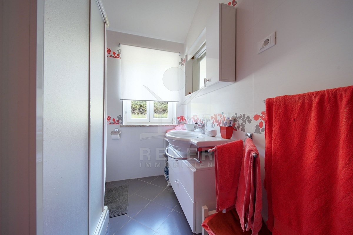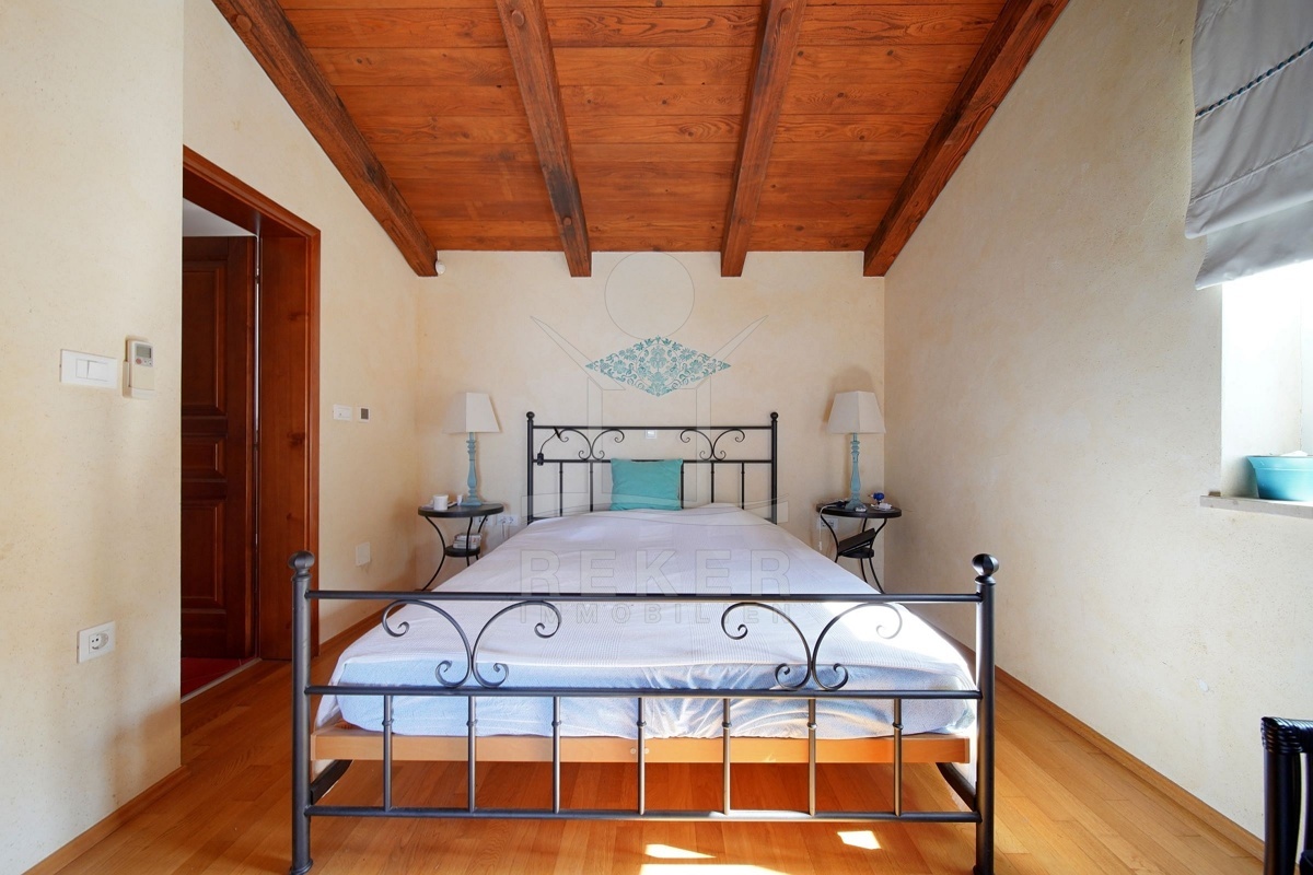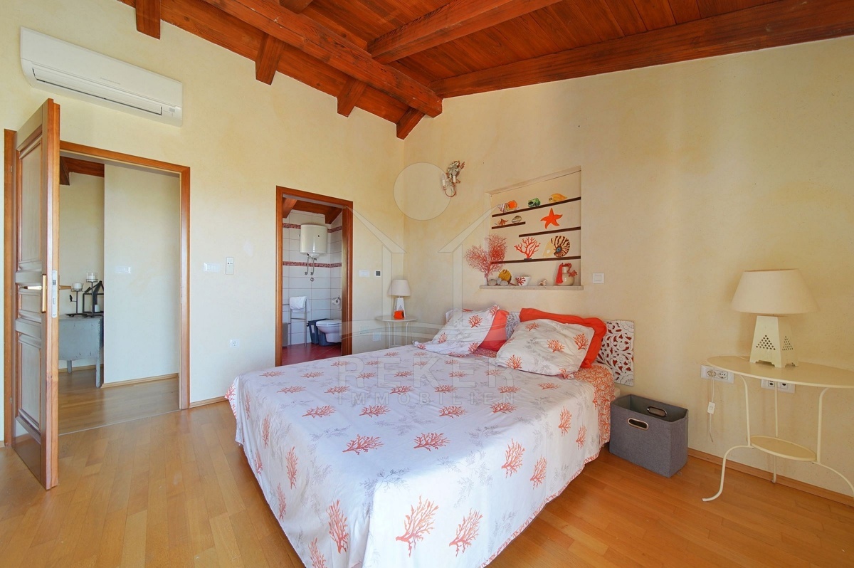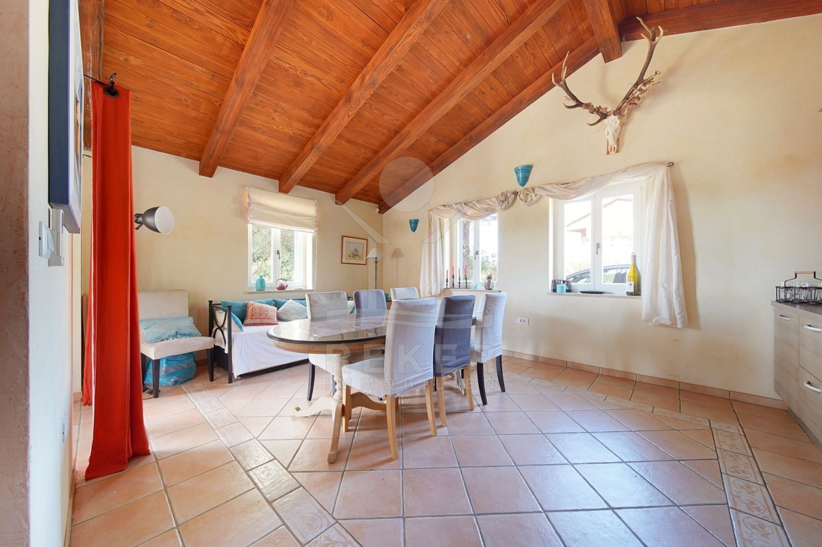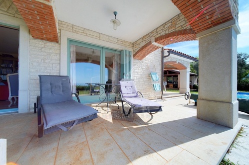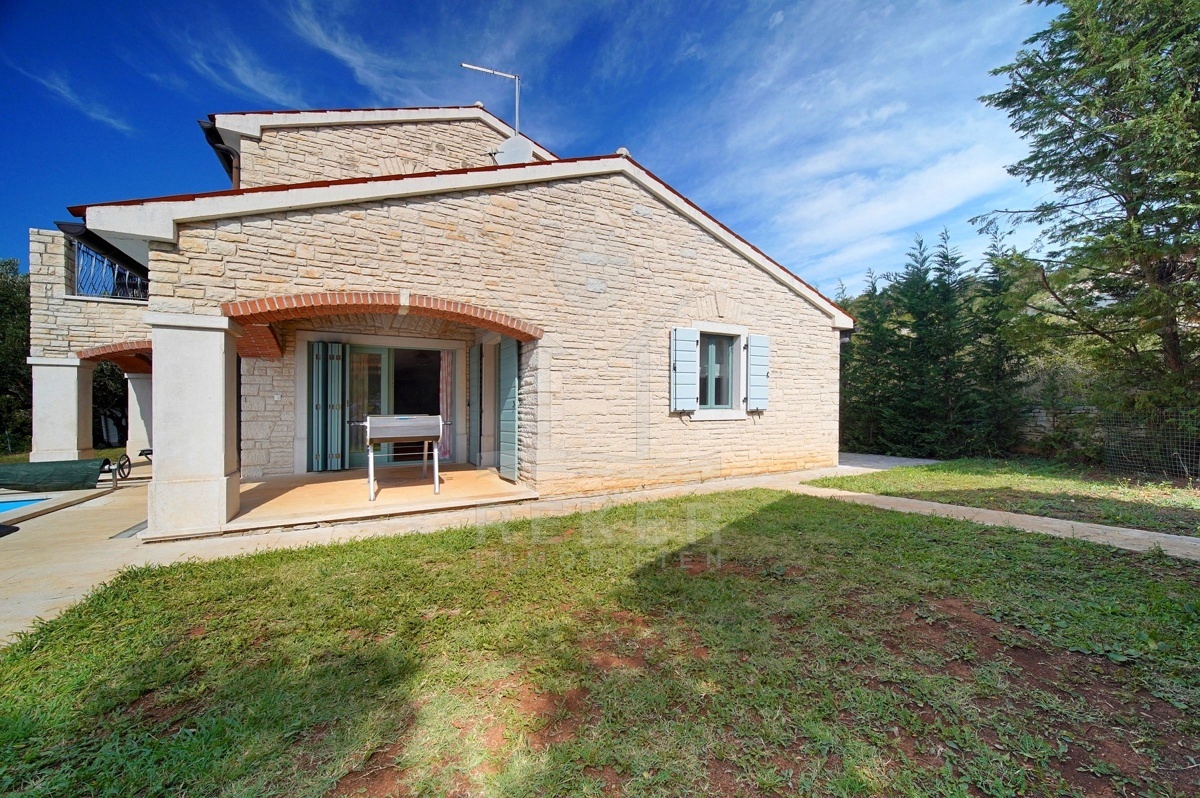 Die 2011 erbaute Villa wurde in massiver Steinbauweise mit 15 cm Wärmedämmung errichtet. Sie verbindet traditionellen istrischen Stil mit modernem Wohnkomfort. Holzfenster mit Doppelverglasung, Massivholztüren, Parkett- und Steinböden sorgen für ein hochwertiges Ambiente. Klimaanlagen, SAT-TV und Alarmanlage gehören zur Ausstattung. Geheizt wird über Kamin und Elektroboiler. Alle Möbel sind im Preis enthalten, das Haus ist sofort bezugsbereit.