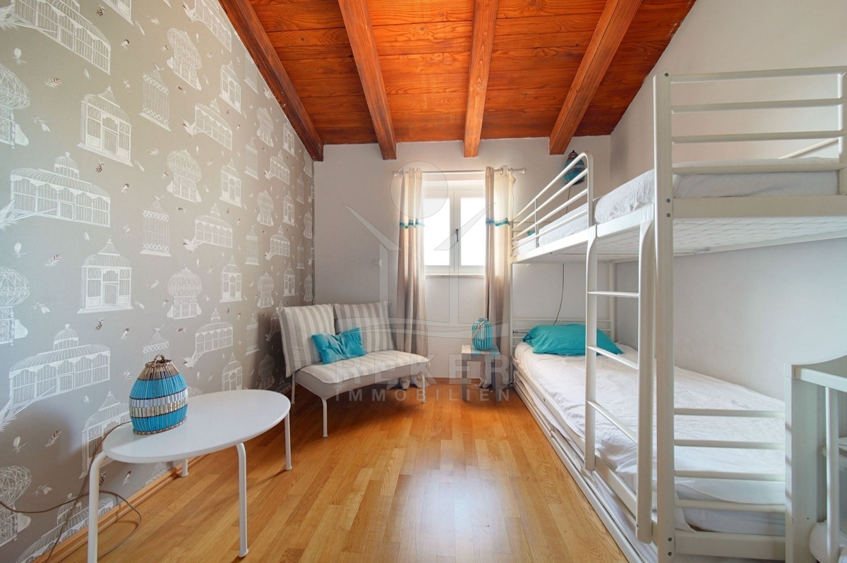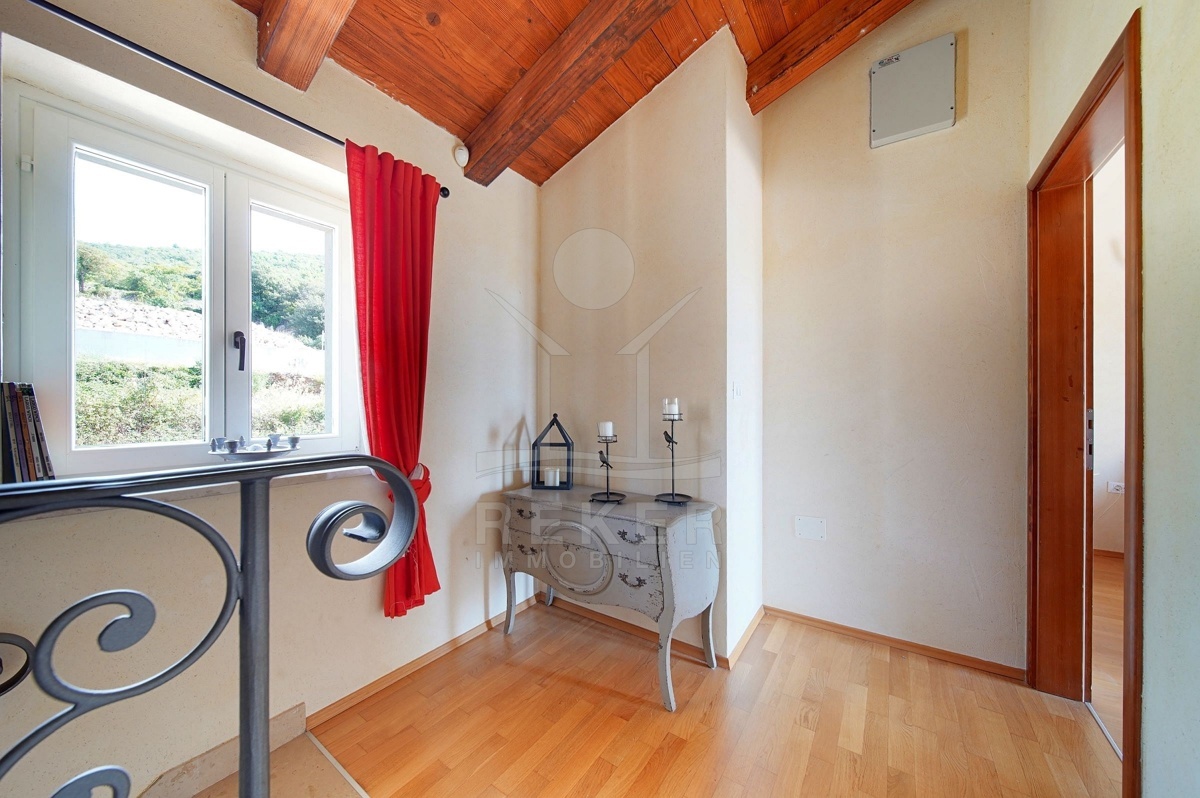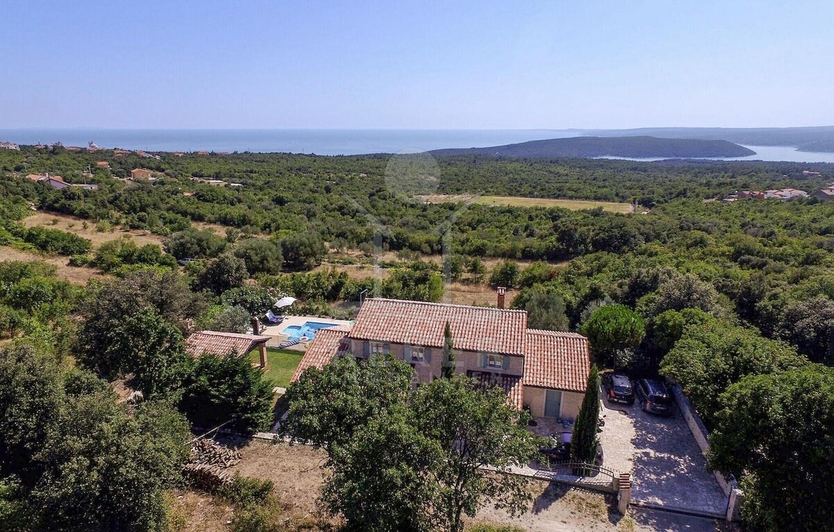 In ruhiger Hügellandschaft oberhalb der Bucht von Raša präsentiert sich diese charmante Steinvilla, umgeben von grüner Natur und mit weitem Blick auf Meer und Landschaft. Privatsphäre ist hier selbstverständlich. Der nächste Strand ist nur 3,3 km entfernt, die Altstadt von Labin erreichen Sie in rund 13 Minuten. Über eine private Zufahrt gelangen Sie auf das 964 m² große Grundstück, eingefasst von einer Trockenmauer und einem automatischen Schiebetor. Auf dem gepflasterten Hof stehen mehrere Stellplätze zur Verfügung.