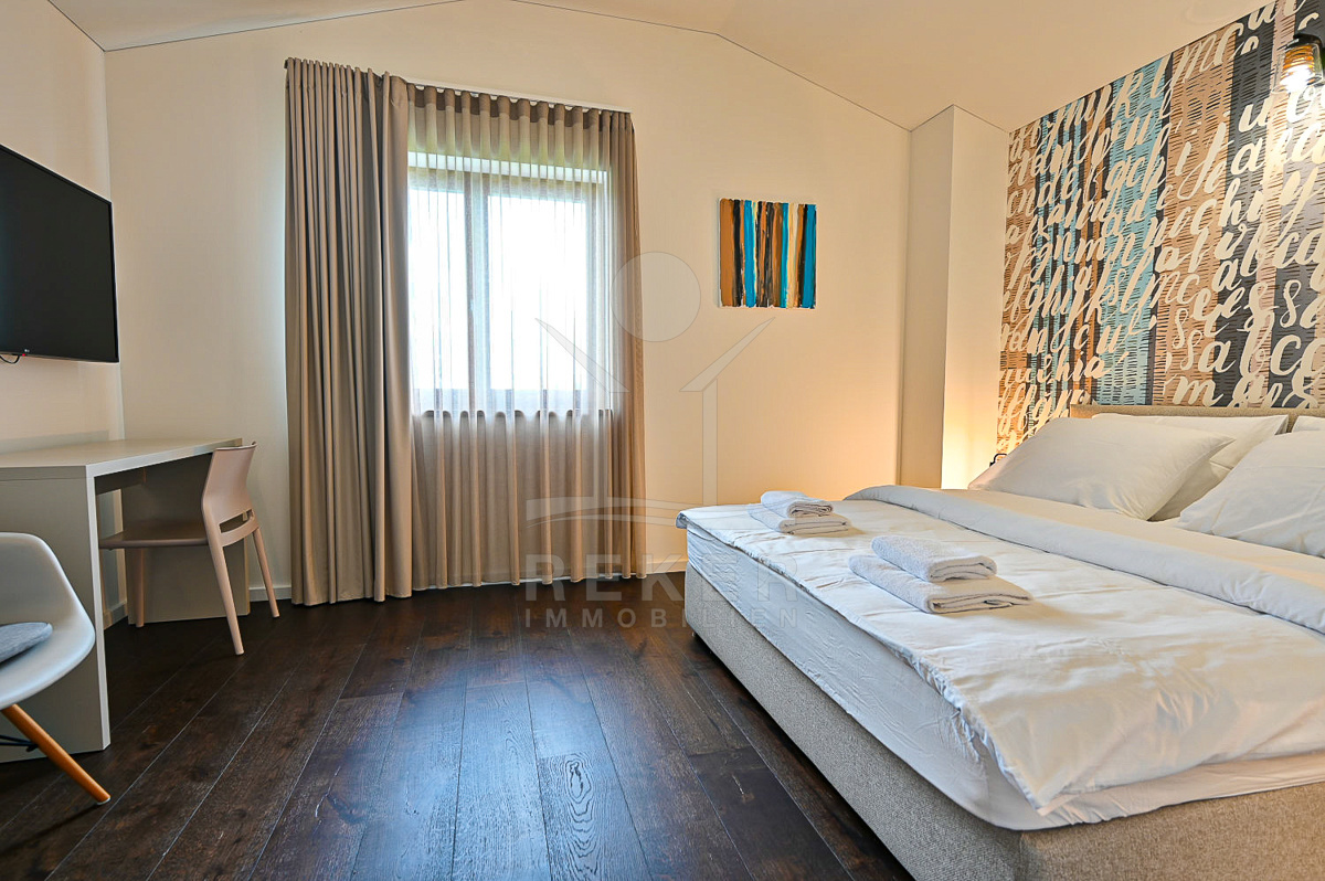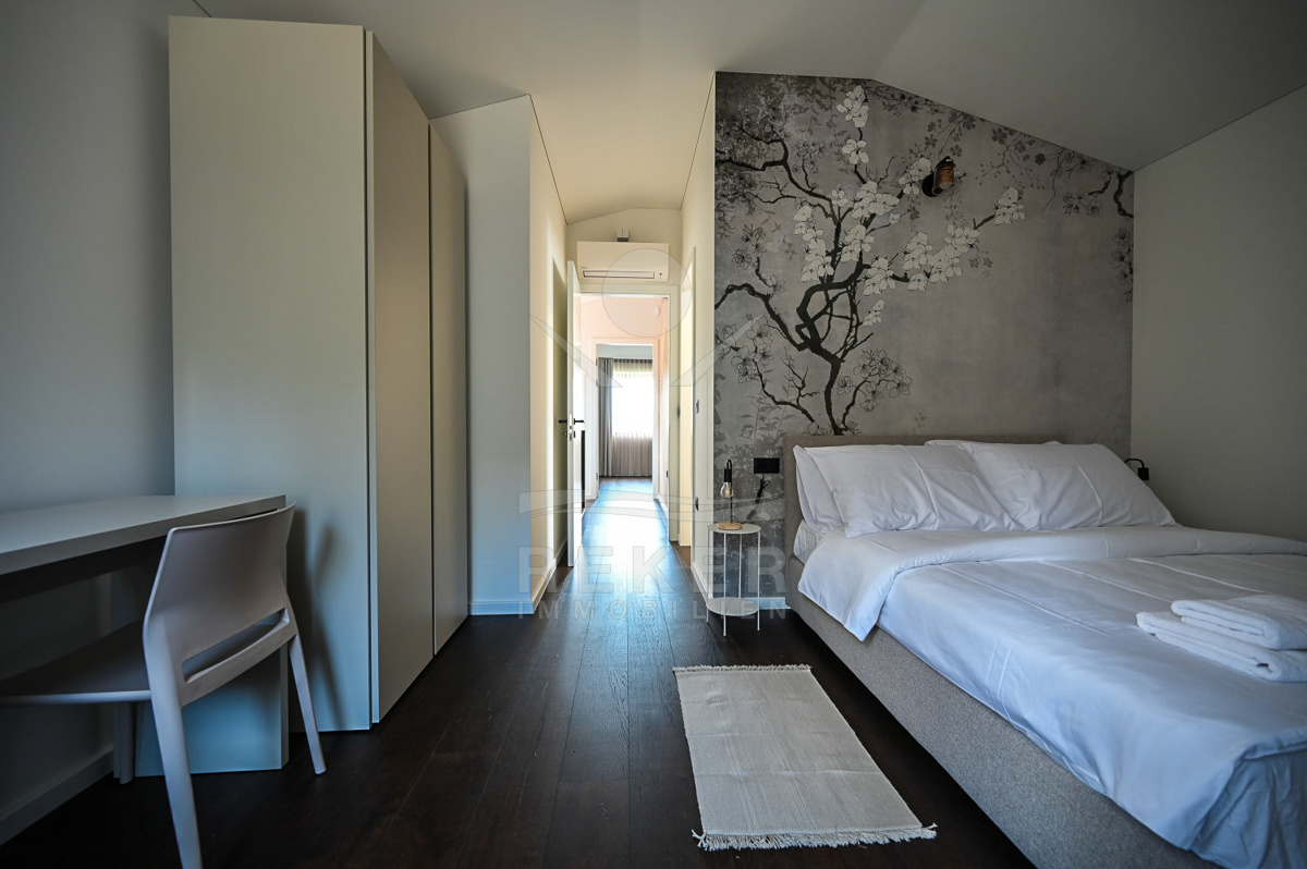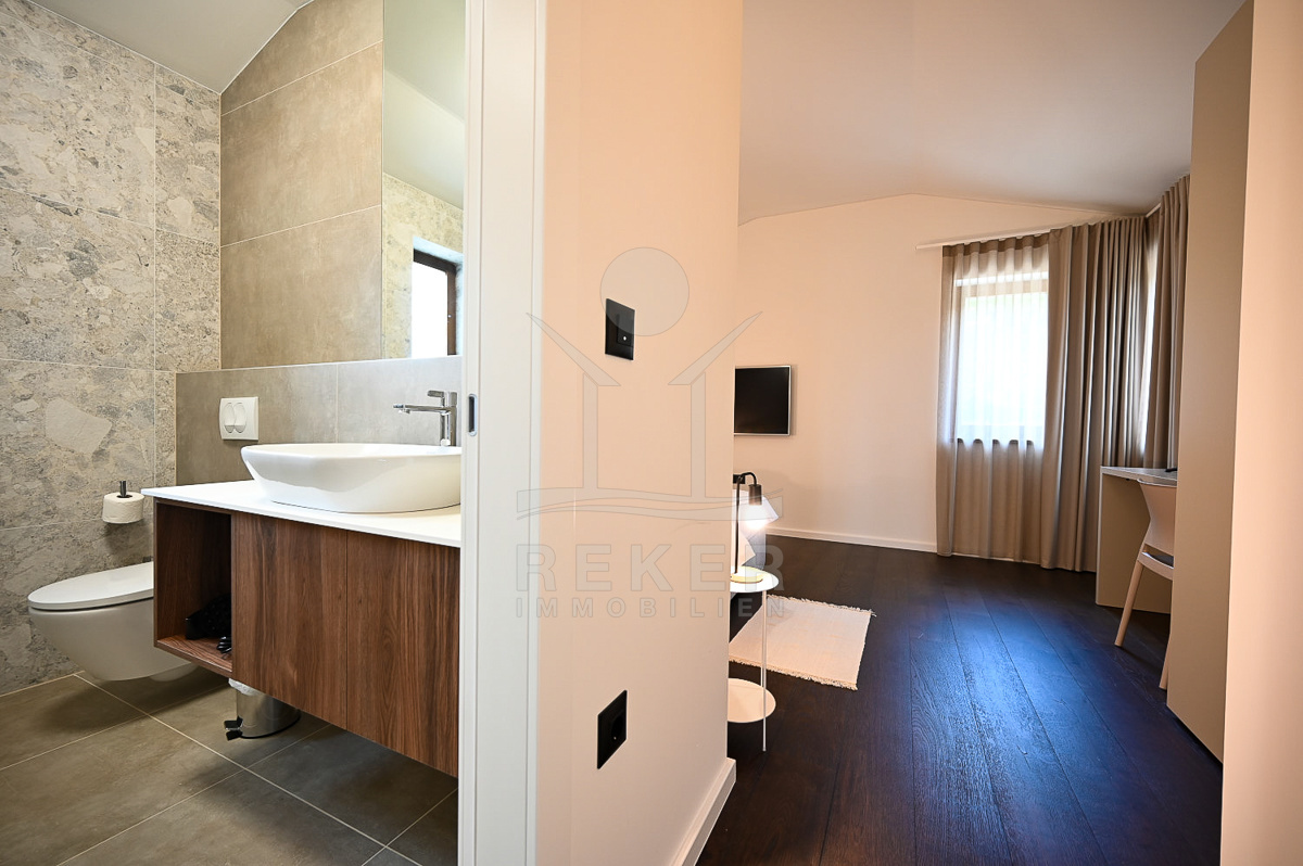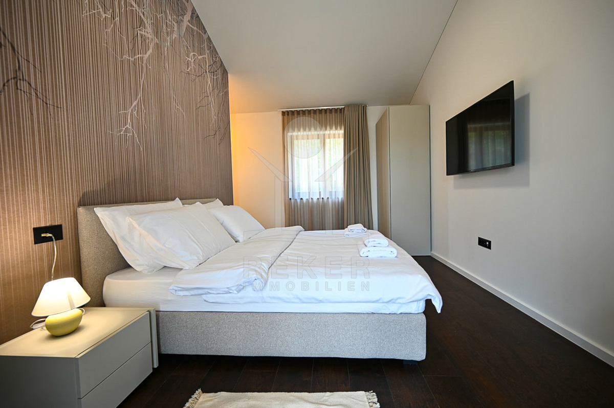 Die Villa liegt in einer bezaubernden ländlichen Umgebung in der Nähe von Poreč, nur wenige Autominuten vom Meer entfernt. In der kleinen istrischen Stadt, 14 km vom Zentrum von Poreč und den Stränden gelegen, erwartet Sie eine harmonische Atmosphäre, die Ruhe und Erholung verspricht. Die Stadt Poreč lockt mit einer Vielzahl an kulturellen Sehenswürdigkeiten, von der Euphrasia Basilika (UNESCO-Weltkulturerbe) bis hin zu zahlreichen Veranstaltungen und einem lebendigen Nachtleben. Die umliegenden Strände sind bekannt für ihre ausgezeichnete Wasserqualität und bieten sowohl Badespaß als auch eine Vielzahl an Sport- und Freizeitmöglichkeiten.