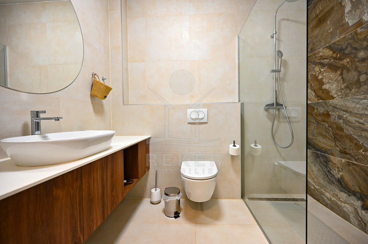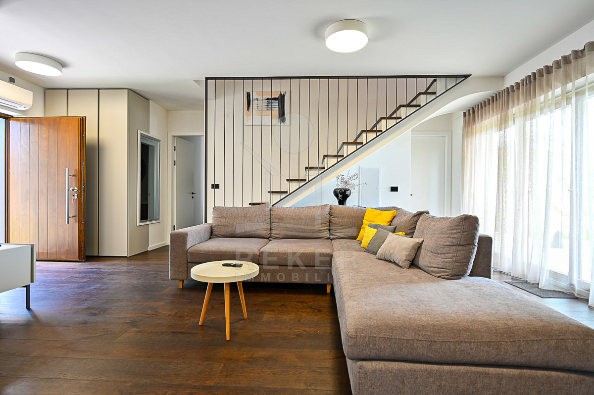 Die im Jahr 2022 erbaute Villa erstreckt sich über 2 Etagen und bietet eine Wohnfläche von 160 m² auf einem großzügigen Grundstück von 850 m². Der umzäunte Garten ist eine grüne Oase und wird automatisch bewässert, sodass Sie sich entspannt zurücklehnen können. Die Villa verfügt über modernen Komfort, darunter Fußbodenheizung und Klimaanlagen mit Wärmepumpe für ein angenehmes Raumklima zu jeder Jahreszeit. Parkplätze befinden sich auf dem Grundstück.