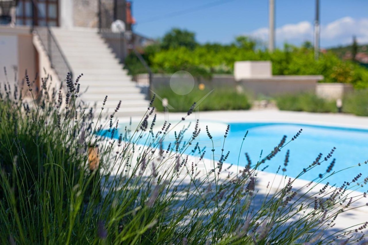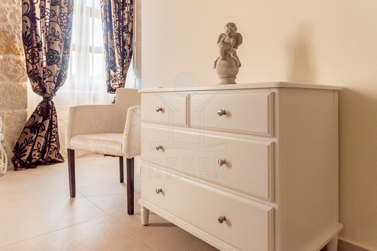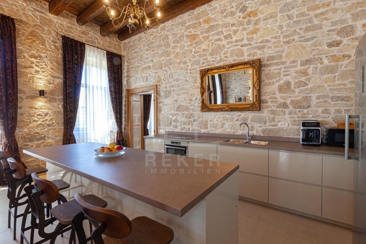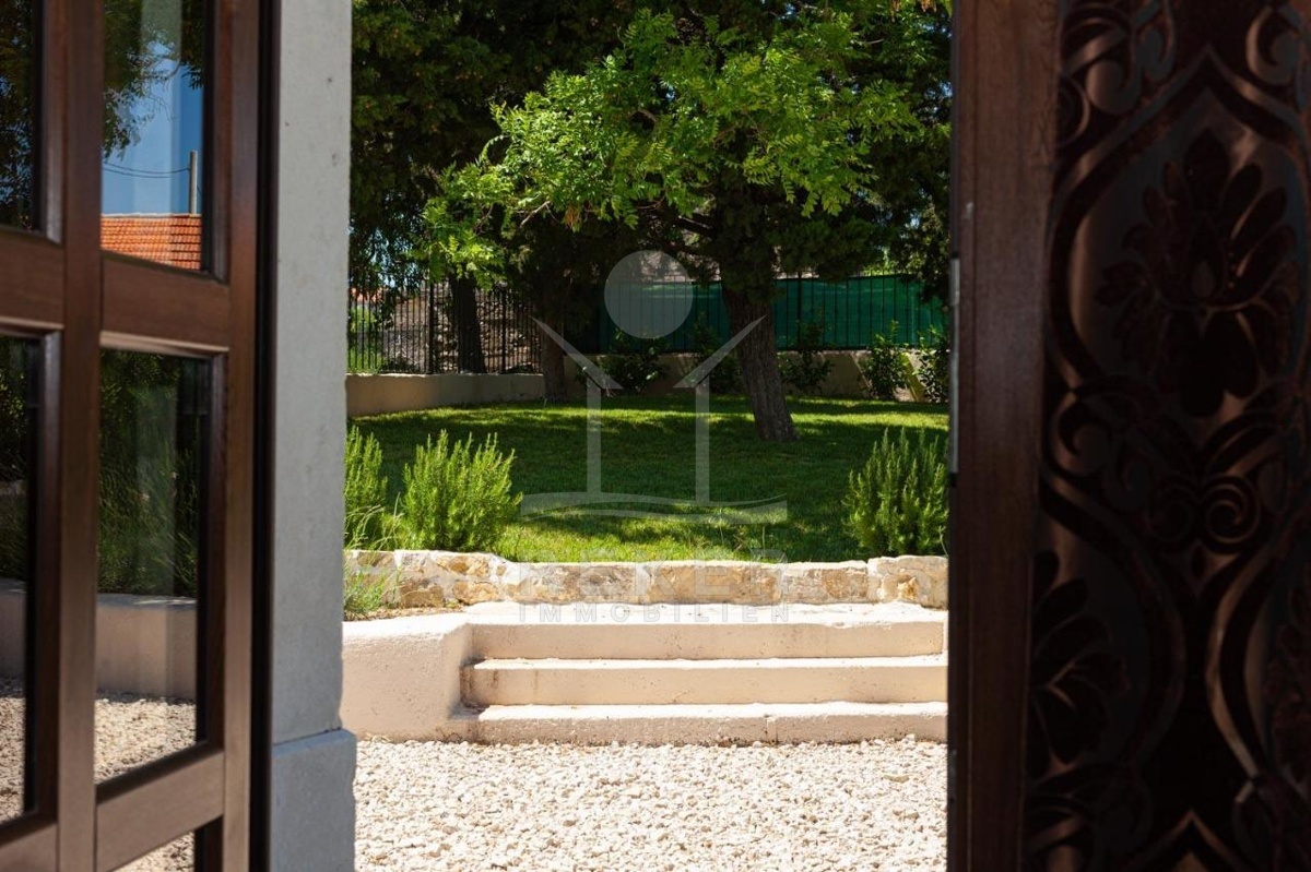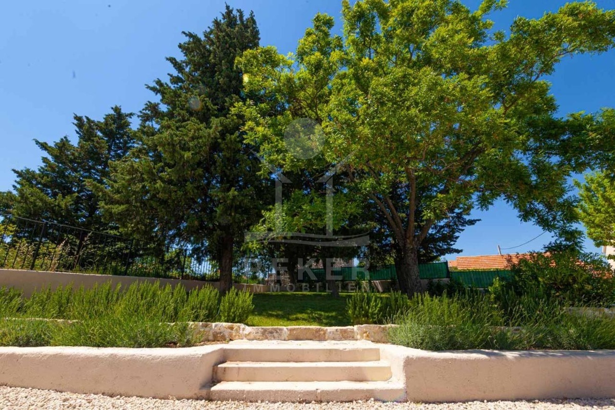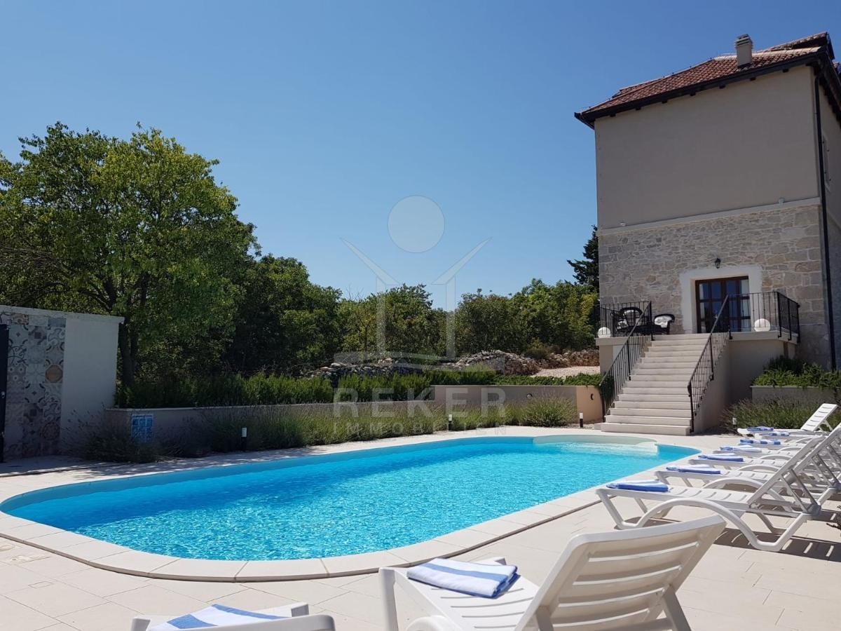 Die stilvolle Steinhaus-Villa liegt in der idyllischen Skradin-Gemeinde, umgeben von Olivenhainen, Weinbergen und Weingütern. Nur etwa 13 km vom Meer entfernt, bietet sie eine perfekte Mischung aus Ruhe und Nähe zu den Sehenswürdigkeiten der Region. Die bekannte Stadt Skradin, der eindrucksvolle Nationalpark Krka und die historische Stadt Sibenik sind leicht erreichbar. Mit dem Hafen von Vodice nur 30 Autominuten und Split etwa 50 Autominuten entfernt, ist die Lage ideal für Entdeckungstouren. Skradin ist berühmt als "Tor zum Krka Nationalpark" und fasziniert mit seinen Wasserfällen und der unberührten Natur. Die Stadt selbst besticht mit engen Gassen, historischer Architektur und dem smaragdgrünen Fluss Krka. Skradins romantische Atmosphäre hat bereits Prominente wie Bill Gates angezogen. Die Umgebung bietet zudem den renommierten Jachthafen ACI Skradin, exzellente Restaurants und lokale Weine für genussvolle Erlebnisse. Das Steinhaus selbst ist ein ruhiger Rückzugsort im Grünen, ideal für Naturliebhaber und Erholungssuchende.