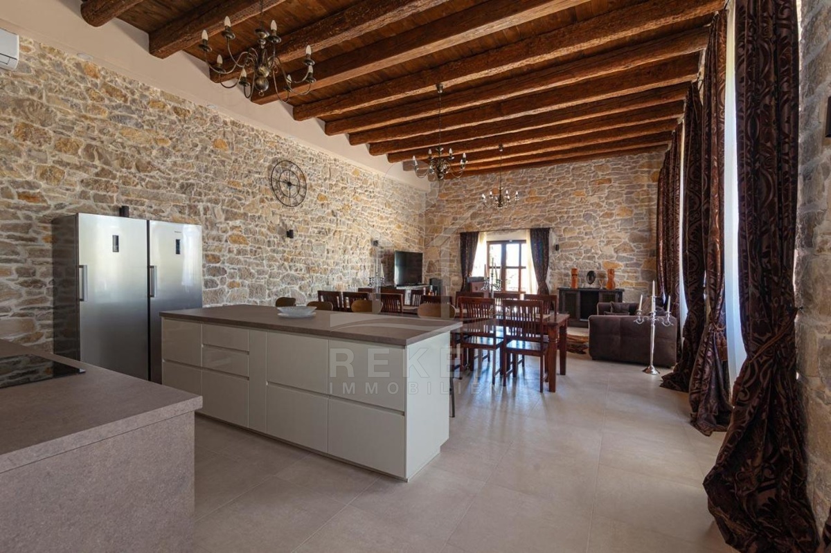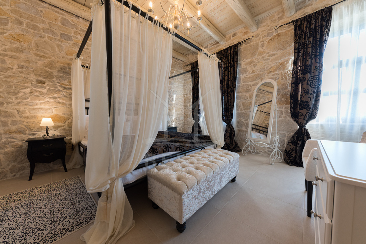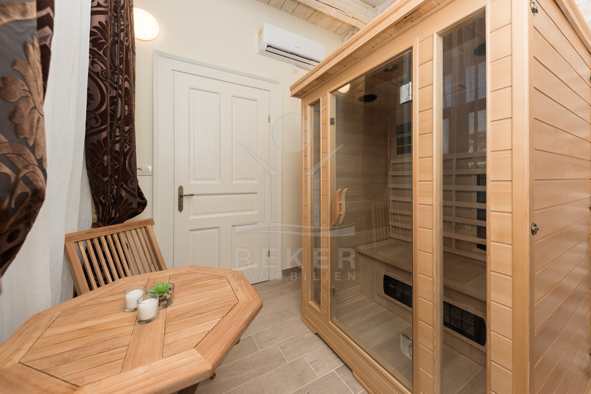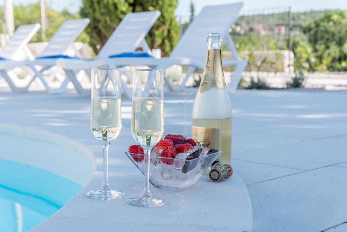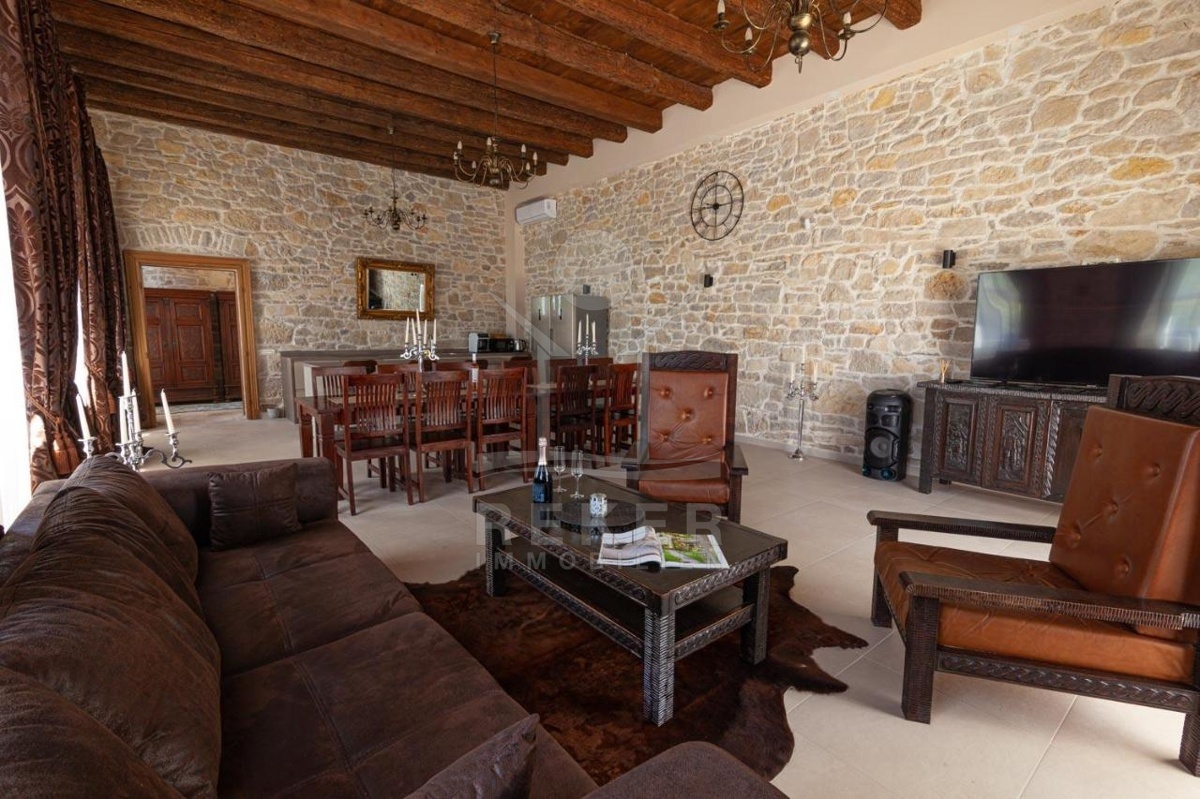 Die stilvolle Steinhaus-Villa liegt in der idyllischen Skradin-Gemeinde, umgeben von Olivenhainen, Weinbergen und Weingütern. Nur etwa 13 km vom Meer entfernt, bietet sie eine perfekte Mischung aus Ruhe und Nähe zu den Sehenswürdigkeiten der Region. Die bekannte Stadt Skradin, der eindrucksvolle Nationalpark Krka und die historische Stadt Sibenik sind leicht erreichbar. Mit dem Hafen von Vodice nur 30 Autominuten und Split etwa 50 Autominuten entfernt, ist die Lage ideal für Entdeckungstouren. Skradin ist berühmt als "Tor zum Krka Nationalpark" und fasziniert mit seinen Wasserfällen und der unberührten Natur. Die Stadt selbst besticht mit engen Gassen, historischer Architektur und dem smaragdgrünen Fluss Krka. Skradins romantische Atmosphäre hat bereits Prominente wie Bill Gates angezogen. Die Umgebung bietet zudem den renommierten Jachthafen ACI Skradin, exzellente Restaurants und lokale Weine für genussvolle Erlebnisse. Das Steinhaus selbst ist ein ruhiger Rückzugsort im Grünen, ideal für Naturliebhaber und Erholungssuchende.
