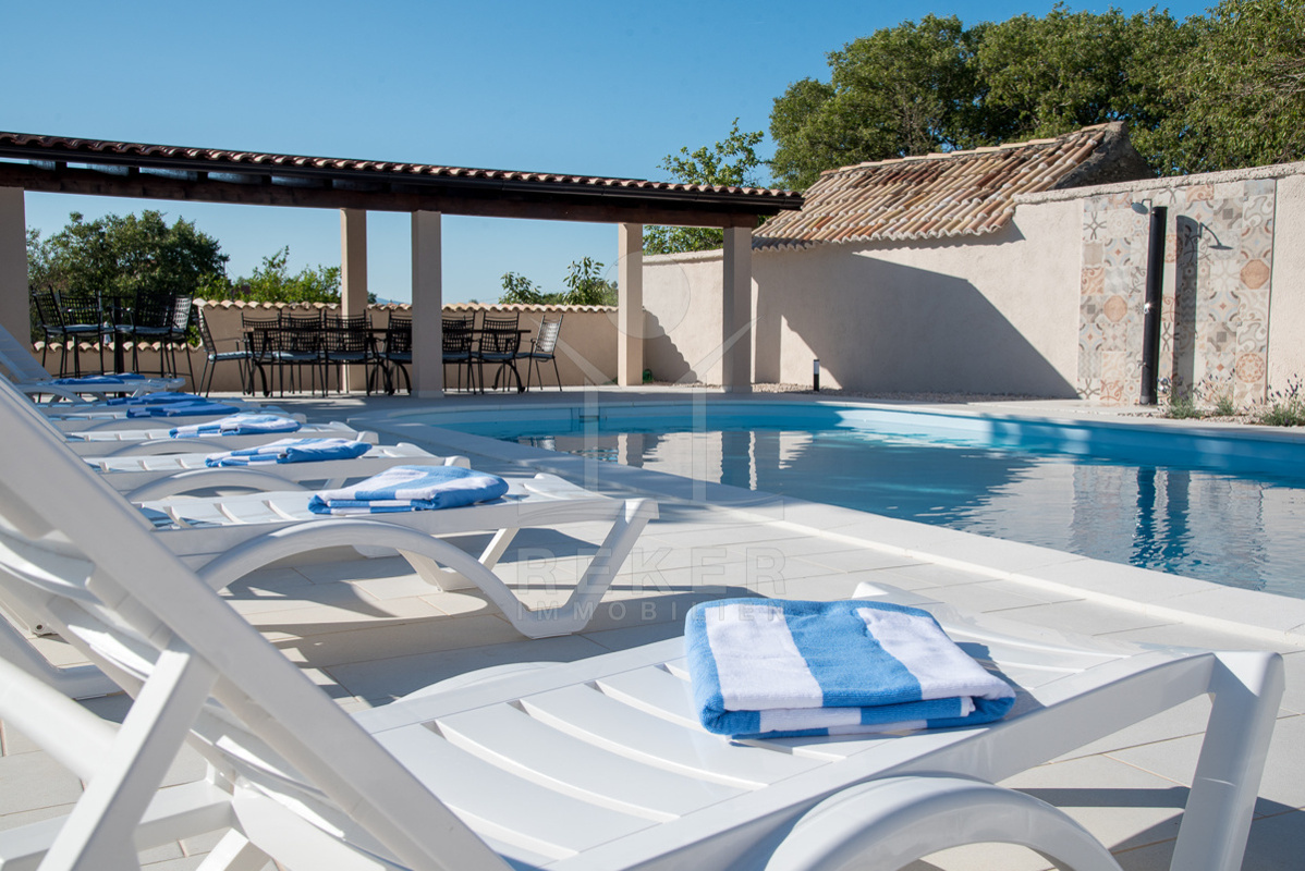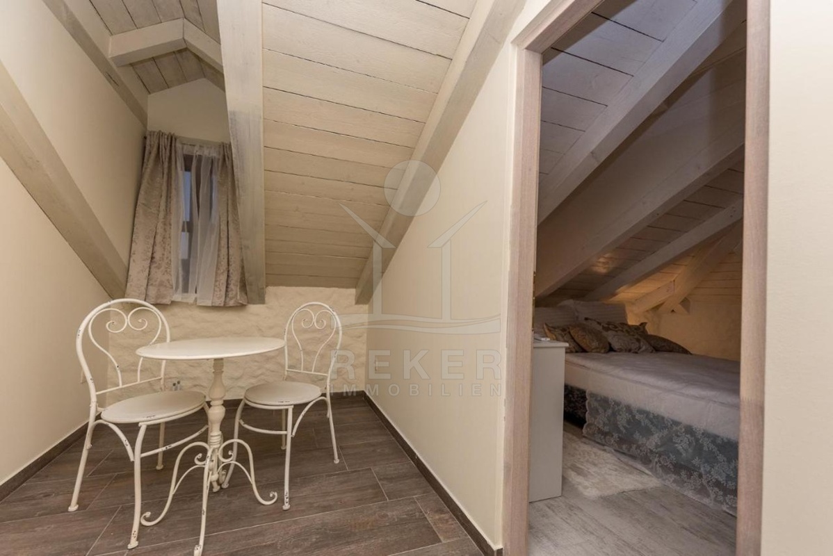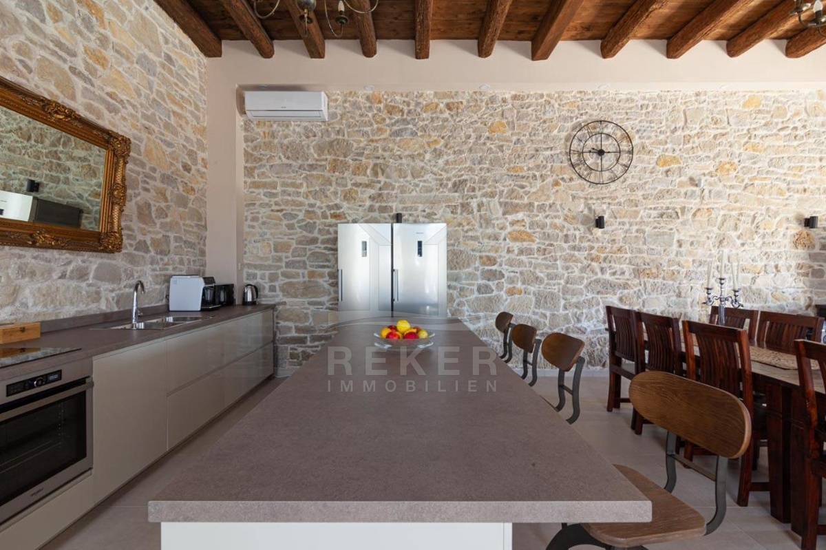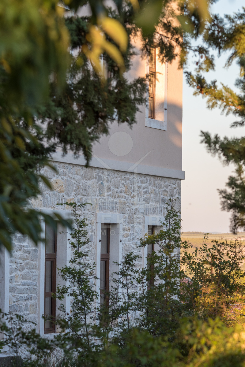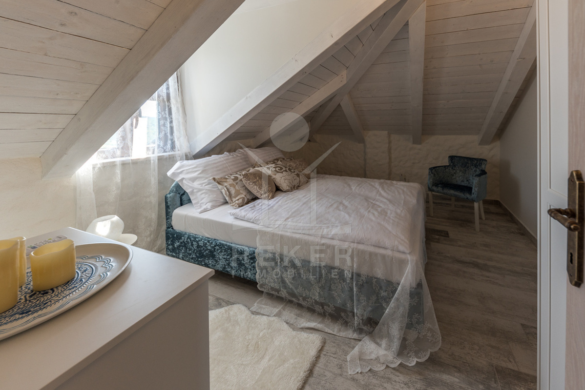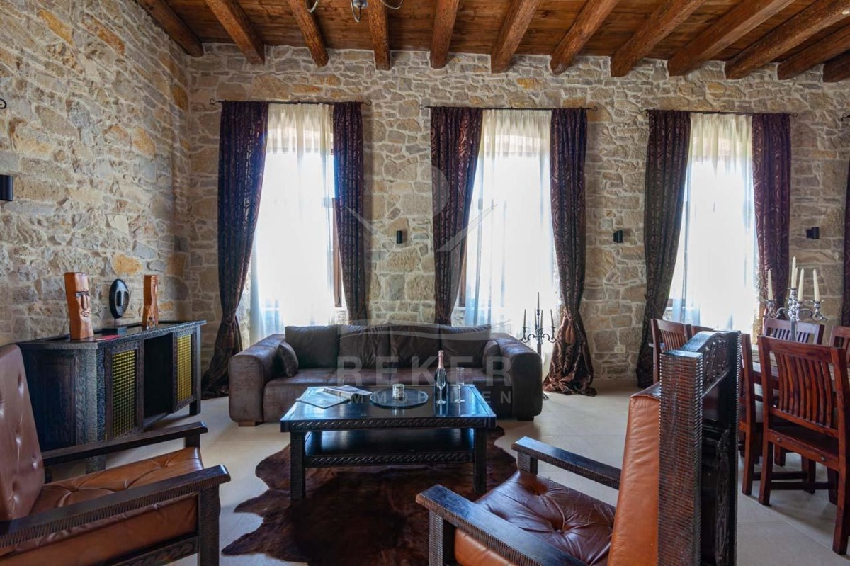 Die stilvolle Steinhaus-Villa liegt in der idyllischen Skradin-Gemeinde, umgeben von Olivenhainen, Weinbergen und Weingütern. Nur etwa 13 km vom Meer entfernt, bietet sie eine perfekte Mischung aus Ruhe und Nähe zu den Sehenswürdigkeiten der Region. Die bekannte Stadt Skradin, der eindrucksvolle Nationalpark Krka und die historische Stadt Sibenik sind leicht erreichbar. Mit dem Hafen von Vodice nur 30 Autominuten und Split etwa 50 Autominuten entfernt, ist die Lage ideal für Entdeckungstouren. Skradin ist berühmt als "Tor zum Krka Nationalpark" und fasziniert mit seinen Wasserfällen und der unberührten Natur. Die Stadt selbst besticht mit engen Gassen, historischer Architektur und dem smaragdgrünen Fluss Krka. Skradins romantische Atmosphäre hat bereits Prominente wie Bill Gates angezogen. Die Umgebung bietet zudem den renommierten Jachthafen ACI Skradin, exzellente Restaurants und lokale Weine für genussvolle Erlebnisse. Das Steinhaus selbst ist ein ruhiger Rückzugsort im Grünen, ideal für Naturliebhaber und Erholungssuchende.