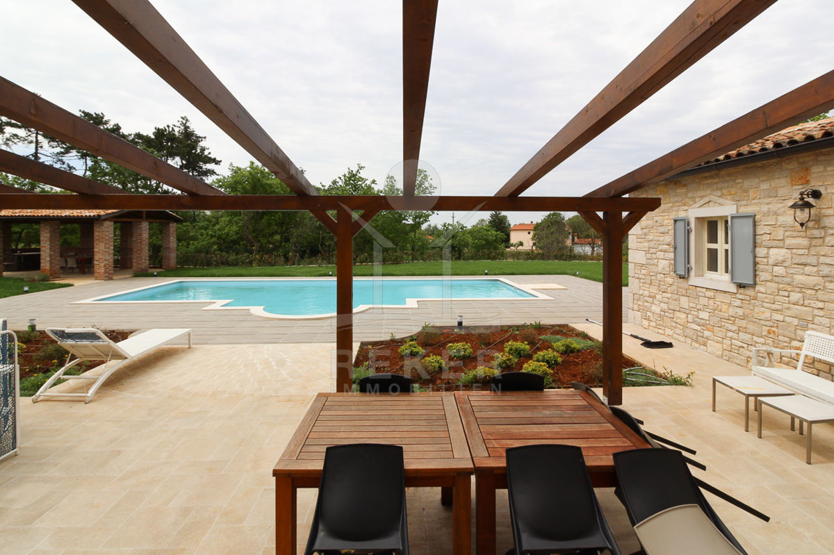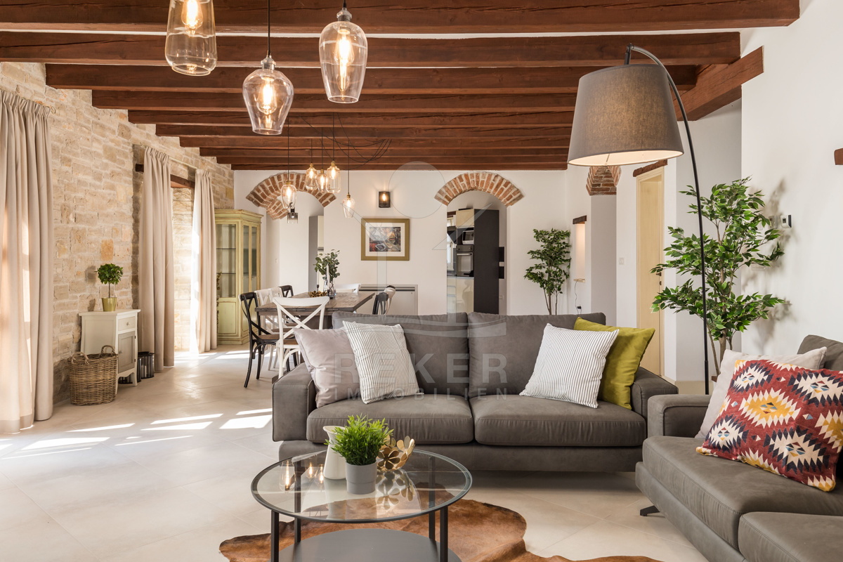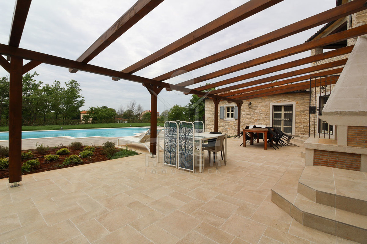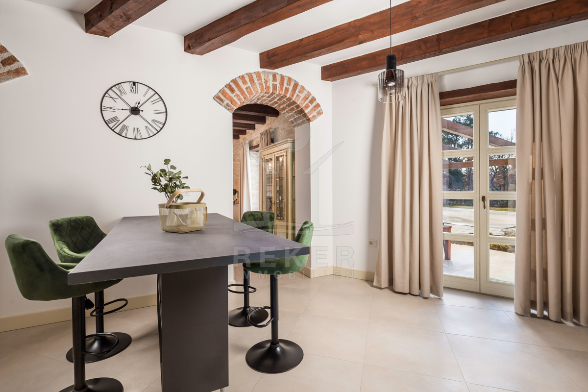 Diese Traum-Immobilie liegt inmitten der kroatischen Natur und erwartet Sie mit einer einmaligen Kombination aus komfortablem Innenraum mit einer großartigen Aufteilung und einem schönen Außenbereich, charakterisiert durch den großen Pool und der sonnigen Terrasse.