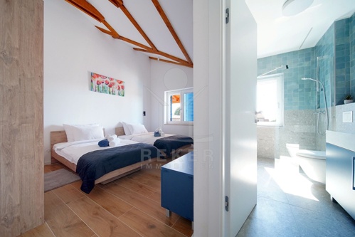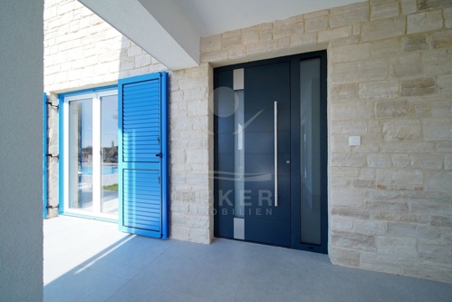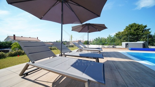 Nur wenige Minuten von Višnjan entfernt erwartet Sie dieses moderne Steinhaus, ruhig gelegen und umgeben von gepflegten Häusern sowie sanfter Landschaft. Einkaufsmöglichkeiten, Restaurants und der historische Ortskern sind schnell erreicht. Nach Poreč und zur Küste fahren Sie etwa 20 Minuten. Auf dem komplett eingefriedeten Grundstück stehen drei private Stellplätze bereit.