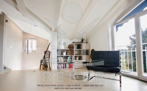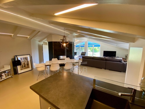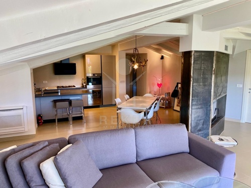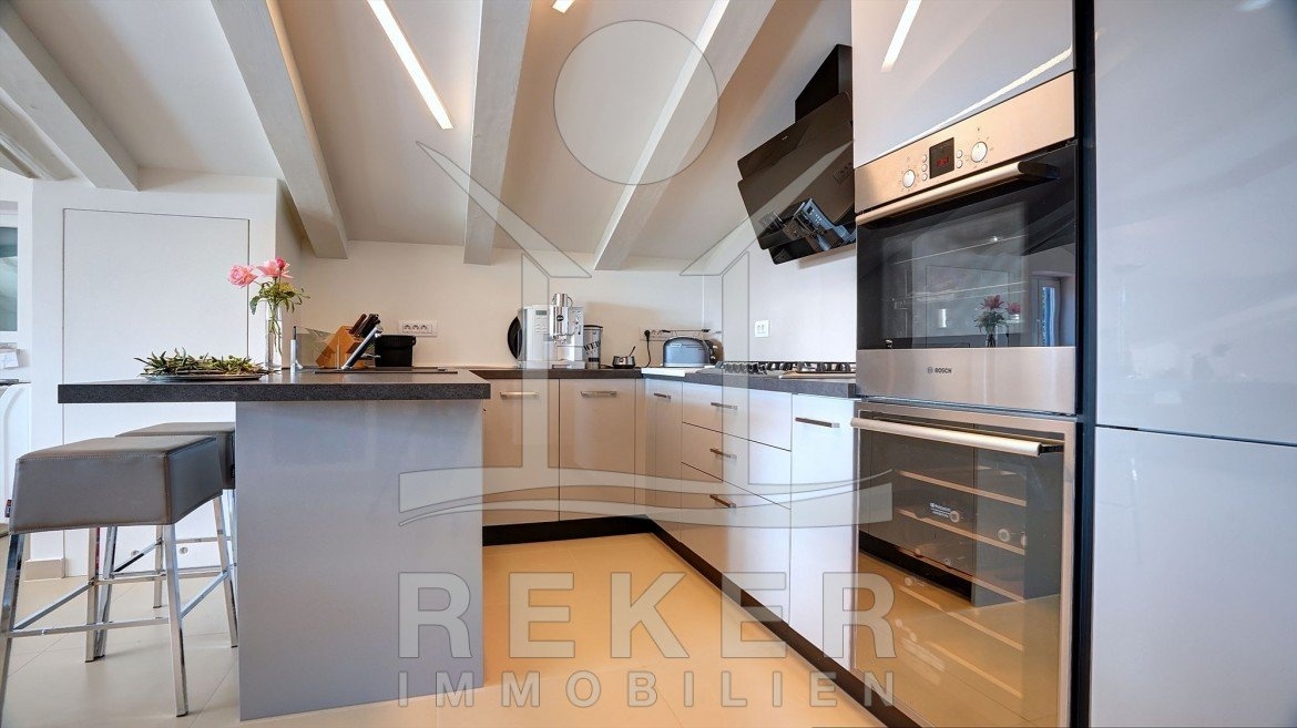 Im Dachgeschoss der Villa befindet sich die Hauptwohnung. Sie finden hier einen offenen und großzügig gehaltenen Wohnbereich. Der helle Raum ist mit hochwertigen Fliesen sowie Klimaanlage ausgestattet. Die große Sitzlounge verspricht angenehme Stunden beim Entspannen und Relaxen. Für ein angenehmes und romantisches Raumklima sorgt der stylishe Kamin. Die moderne Küche mit neuen Elektrogeräten und praktischem Weinschrank. Der Essbereich vom Dachgeschoss bietet 6 Personen Platz. Zwei separate Schlafzimmer mit großen Doppelbetten sowie ein helles Bad runden diese Etage ab Ein Schlafzimmer verfügt über großen Wand-Kleiderschrank. Im stylishen Bad mit frei stehender Badewanne bleiben keine Wünsche offen.