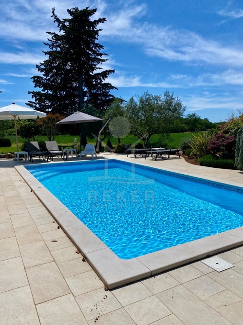 Genießen Sie direkt an der Villa einen mediterranen Garten mit Oliven-, Zitronen- und Feigenbäumen sowie mediterranen Kräutern, welche den ca. 32 m² großen und sonnigen Pool harmonisch umfassen. Auch an eine gepflasterte Liegewiese für mehrere Liegestühle zum Sonnenbaden ist gedacht. Eine großzügige und teils überdachte Terrasse lädt zum Verweilen ein. 2 Etagen mit 5 Zimmern & Bädern. Erbaut im landestypischem Stil mit Bruchstein und schönen Fensterläden.