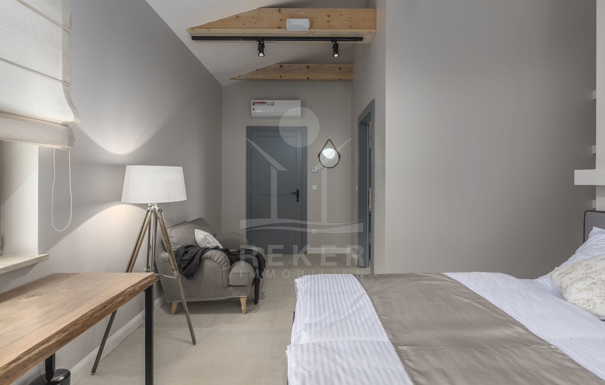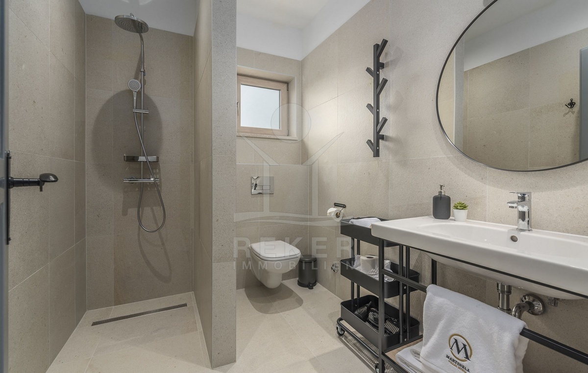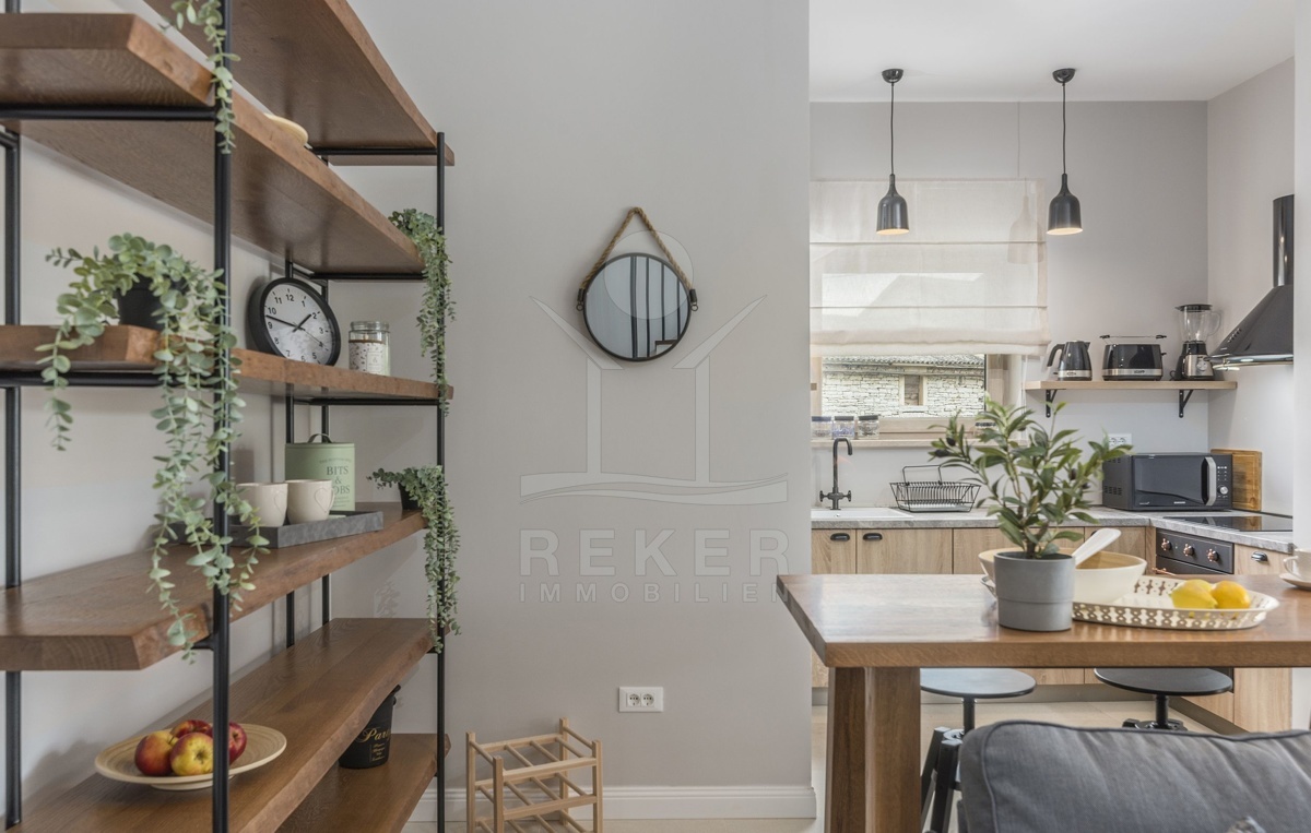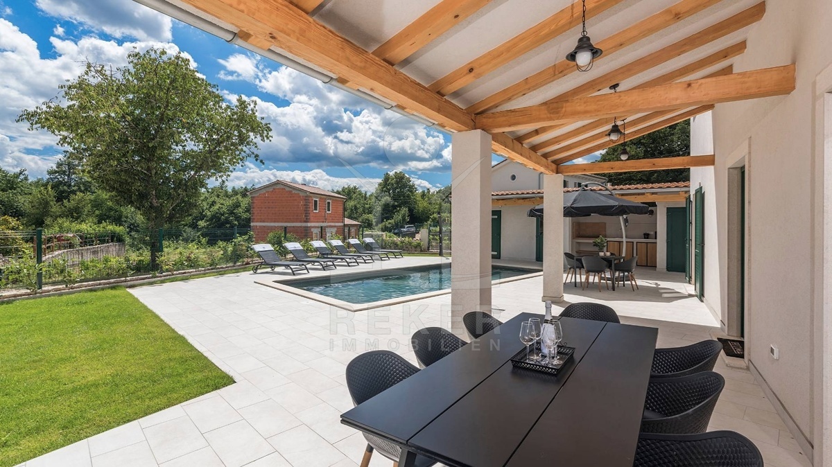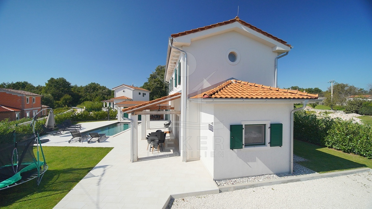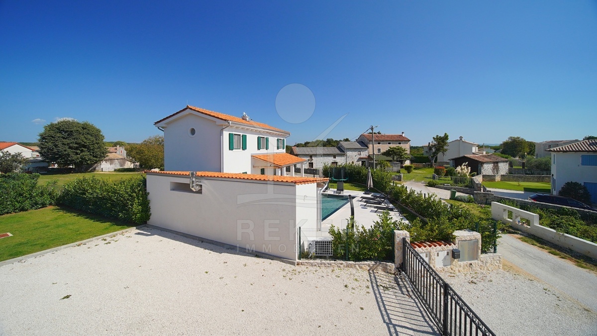 Die Villa befindet sich am Rande eines kleinen Dorfes in der Nähe von Barban und bietet eine ruhige und entspannte Atmosphäre. Hier können Sie dem Alltagsstress entfliehen und die malerische Umgebung genießen. Sie haben die Wahl zwischen verschiedenen Stränden in der Umgebung, wie der Raša Bucht 15 km oder dem Strand Uvala Blaz. Einkaufsmöglichkeiten, Geschäfte, Apotheken, Bars und Cafés sind in 6 km Entfernung bequem erreichbar. Für Unterhaltung sorgen nahegelegene Ausflugsziele wie der Erlebnispark Glavani und die Städte Svetvinčenat in etwa 7 km, Rovinj und Pula sind in 30 km erreichbar. Die Autobahnauffahrt Žminj in 12 km ermöglicht eine schnelle Anbindung an andere Teile der Region. In dieser Lage können Sie sowohl die entspannte Dorfatmosphäre als auch die Nähe zu verschiedenen Annehmlichkeiten und Attraktionen optimal nutzen.