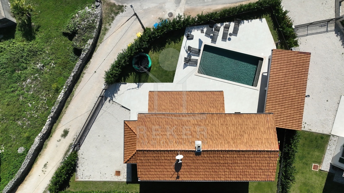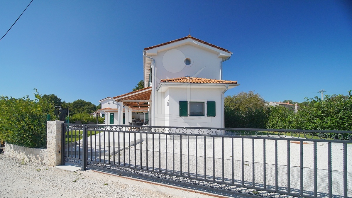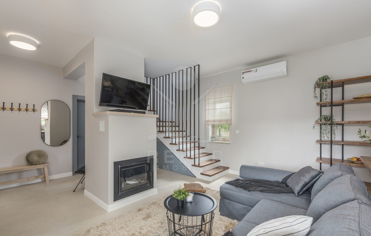 Auf einem 601 m² großen Grundstück erstreckt sich diese moderne Villa über 2 Etagen mit einer Wohnfläche von 160 m². Der Neubau aus dem Jahr 2020 verfügt über eine hochwertige Ausstattung, darunter eine Wärmepumpe und Photovoltaikpanels auf dem Nebengebäude. Die Villa bietet Privatsphäre und Sicherheit durch eine Videoüberwachung. Die Fenster und Türen sind aus hochwertigem PVC oder Aluminium gefertigt und die Innenraumtüren sind stilvoll und klassisch gestaltet.