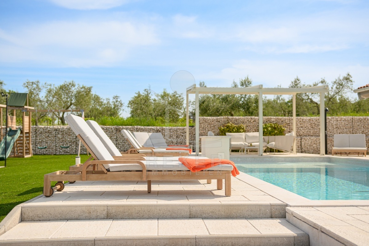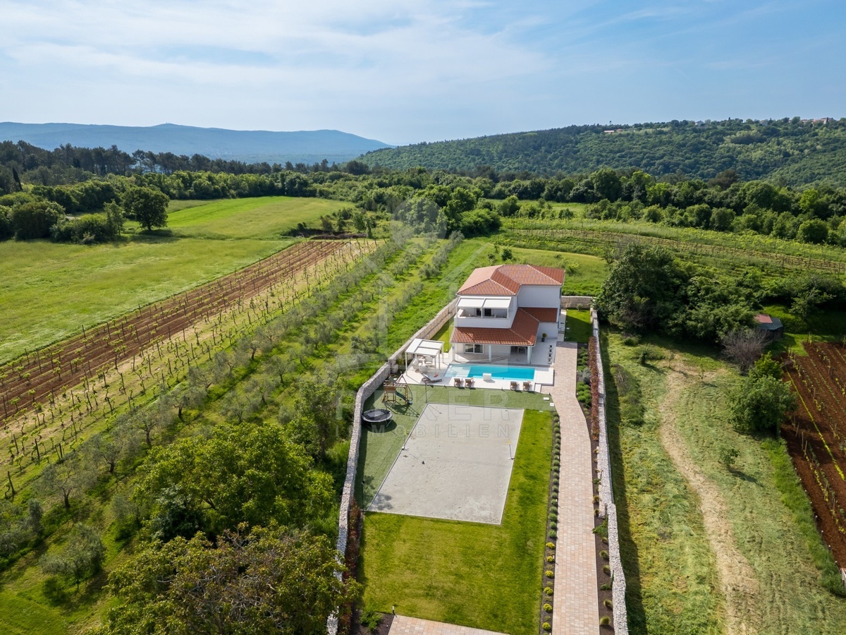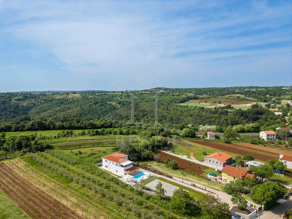 Am Rand von Barban, nur 200 m vom Ortszentrum und 11 km von der Küste entfernt, wartet diese außergewöhnliche Villa auf Sie. Das Grundstück umfasst 1.744 m², ist komplett eingefriedet und bietet gepflegte Gartenflächen sowie mehrere Stellplätze. Eingebettet zwischen Weinbergen und Olivenhainen genießen Sie Ruhe und viel Privatsphäre.