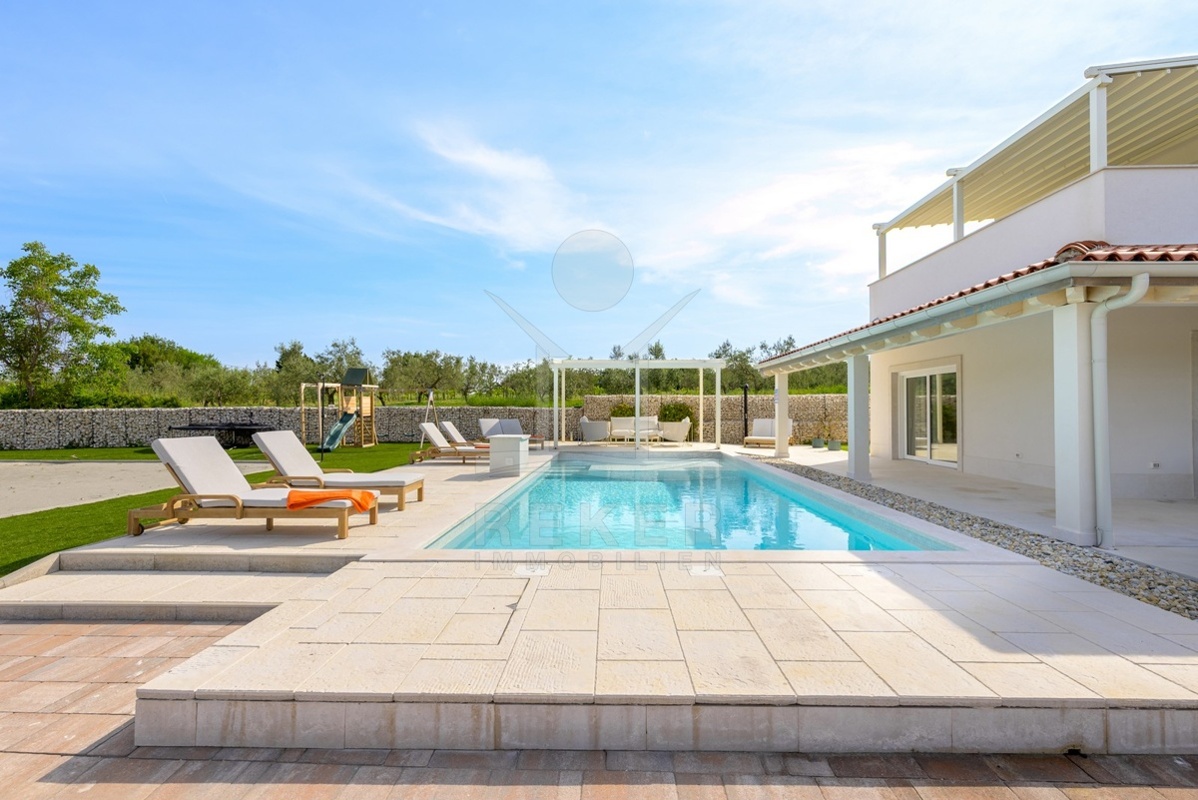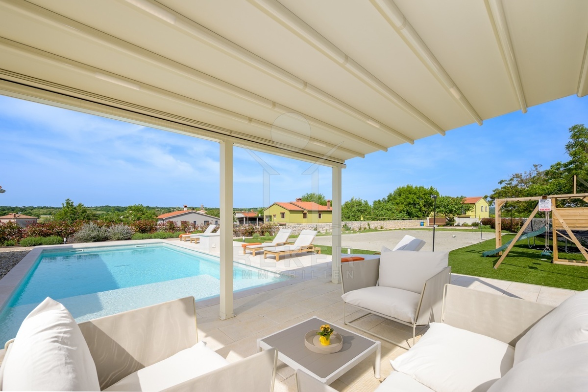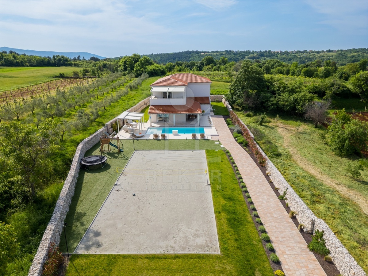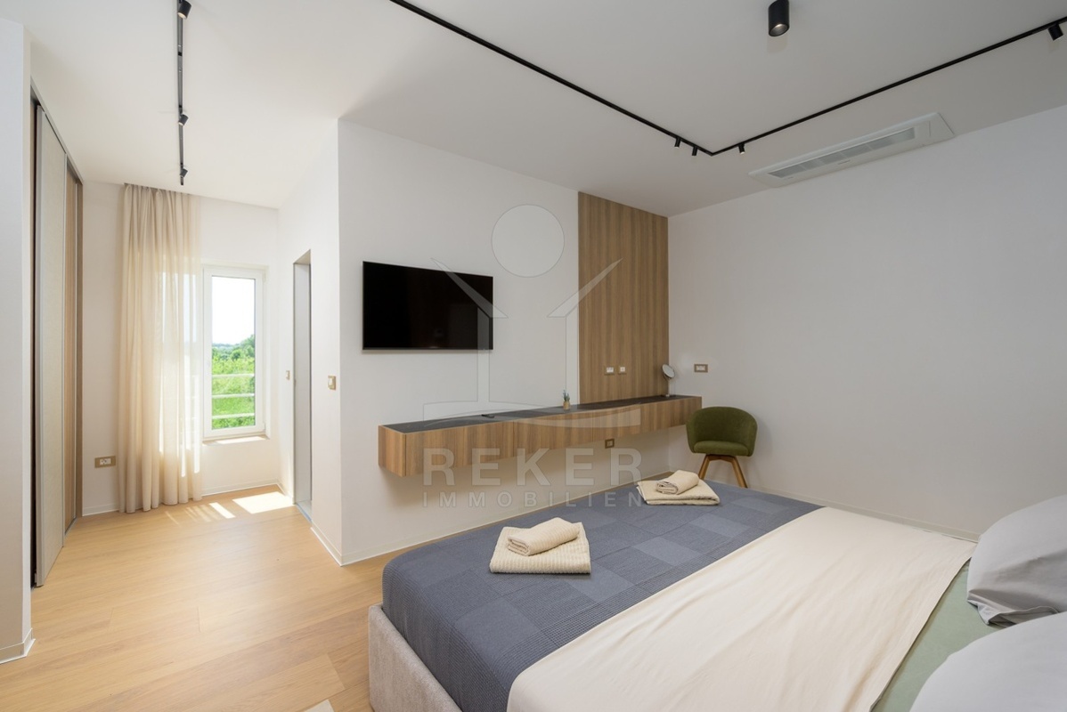 Am Rand von Barban, nur 200 m vom Ortszentrum und 11 km von der Küste entfernt, wartet diese außergewöhnliche Villa auf Sie. Das Grundstück umfasst 1.744 m², ist komplett eingefriedet und bietet gepflegte Gartenflächen sowie mehrere Stellplätze. Eingebettet zwischen Weinbergen und Olivenhainen genießen Sie Ruhe und viel Privatsphäre.