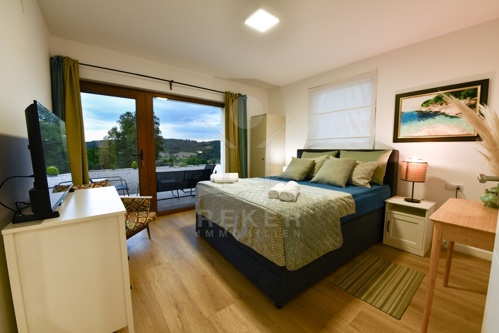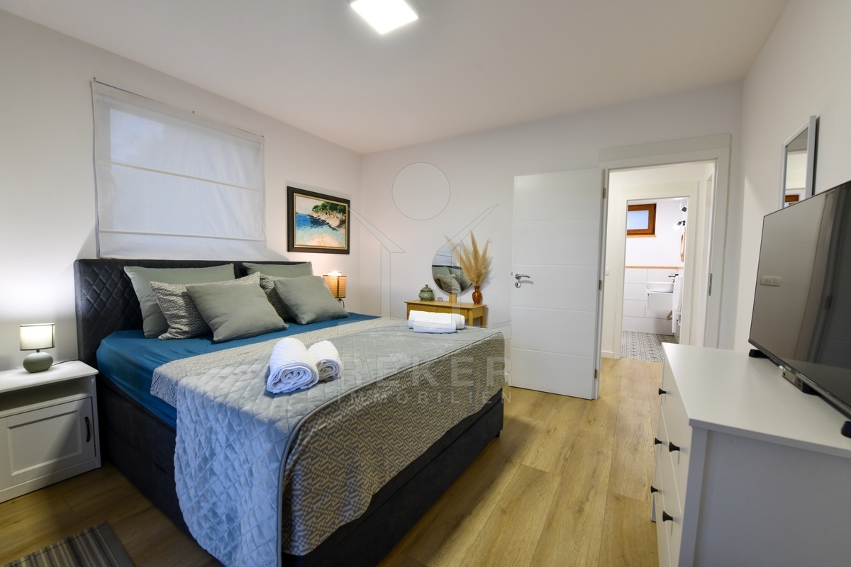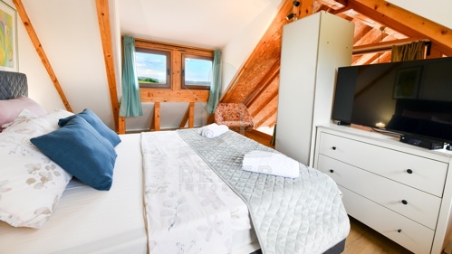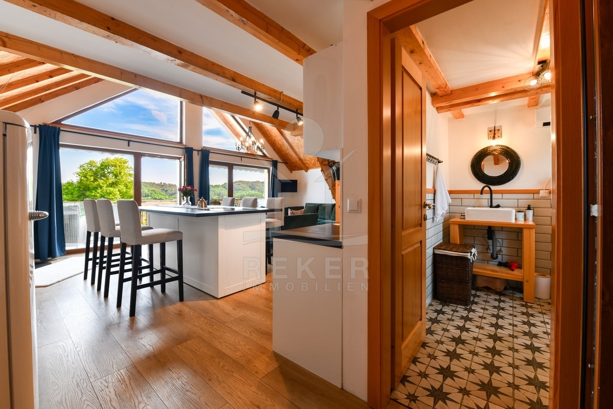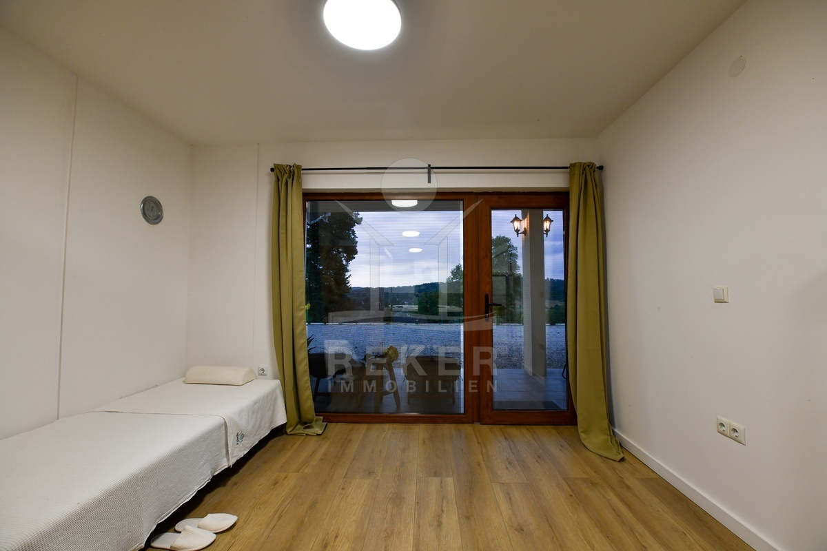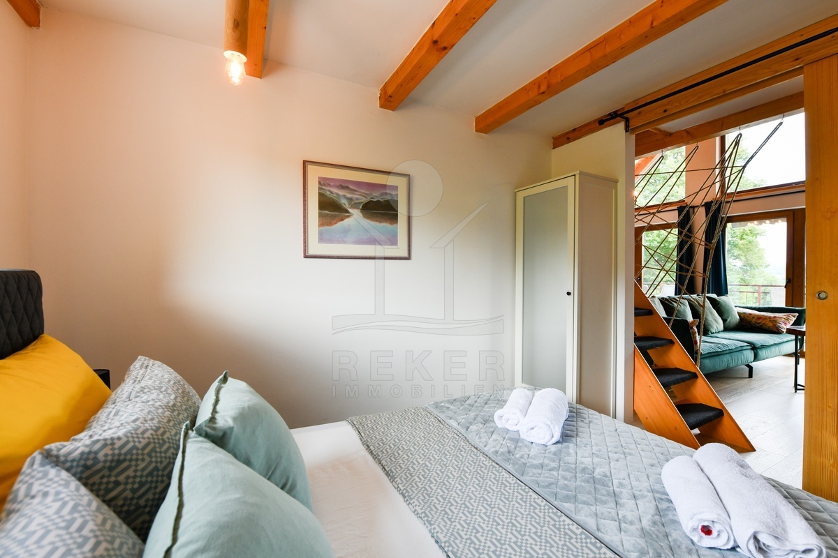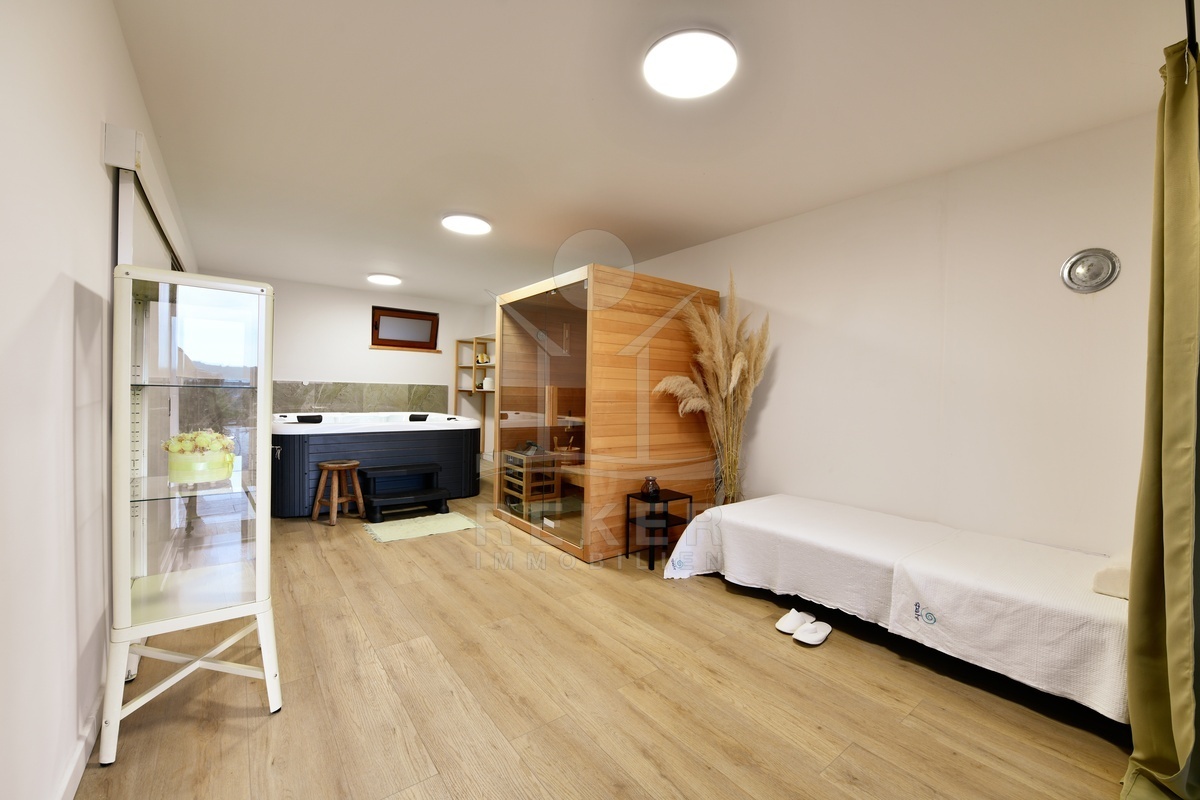 Errichtet wurde das Haus zwischen 2021 und 2025, die Fertigstellung erfolgte 2025. Die Bauweise überzeugt mit guter Dämmung, Dreifachverglasung und Klimaanlage. Beheizt wird über einen Holzofen und Klimageräte. Zur Ausstattung zählen Sauna, Whirlpool, Fitnessraum, Videoüberwachung und ein Grillplatz. Die Möblierung ist im Kaufpreis enthalten. Mit zwei Küchen, drei Schlafzimmern und zwei Badezimmern eignet sich die Immobilie sowohl als dauerhaftes Zuhause als auch als hochwertiges Ferienhaus in ruhiger, naturnaher Umgebung.