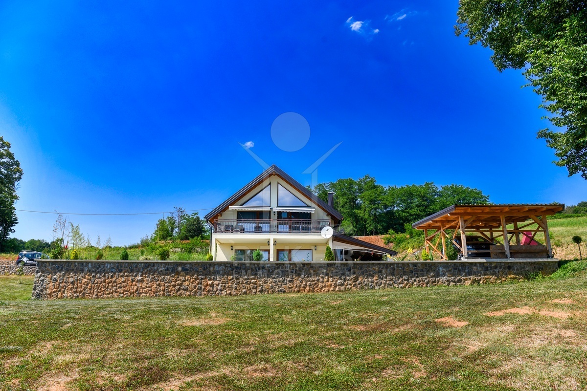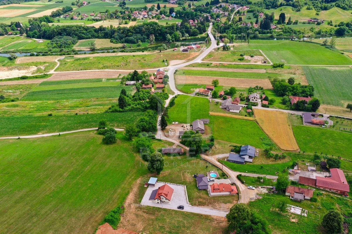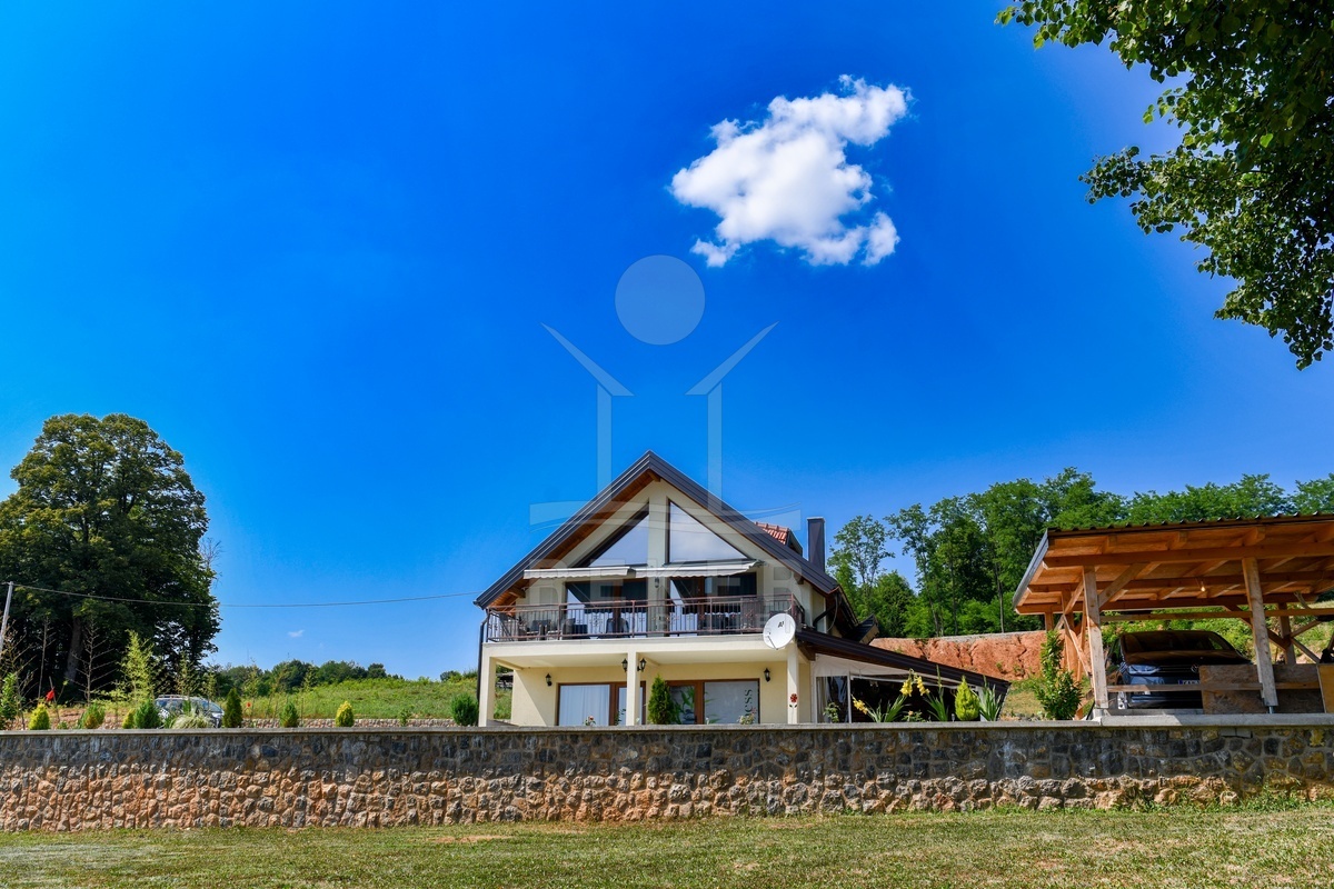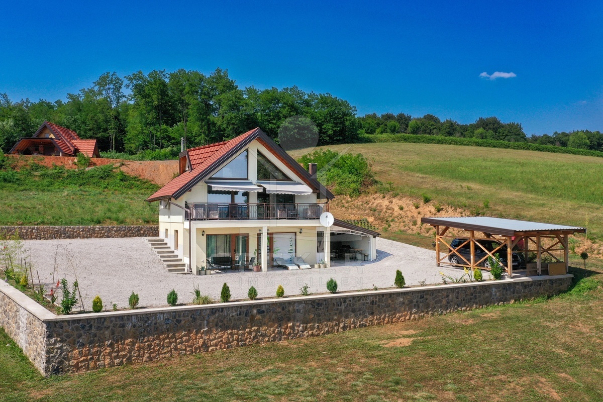 Dieses moderne Einfamilien- und Ferienhaus befindet sich in der Gemeinde Barilović, umgeben von viel Grün, nur rund 650 m vom Fluss Korana entfernt und etwa 15 km von Karlovac. Ruhe und Natur treffen hier auf eine praktische Erreichbarkeit des täglichen Bedarfs. Der asphaltierte Zugang und der überdachte Parkplatz erleichtern den Alltag und sorgen auch während der Ferien für ein entspanntes Ankommen.