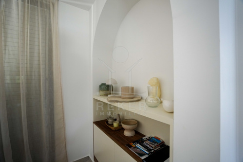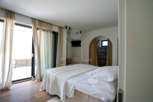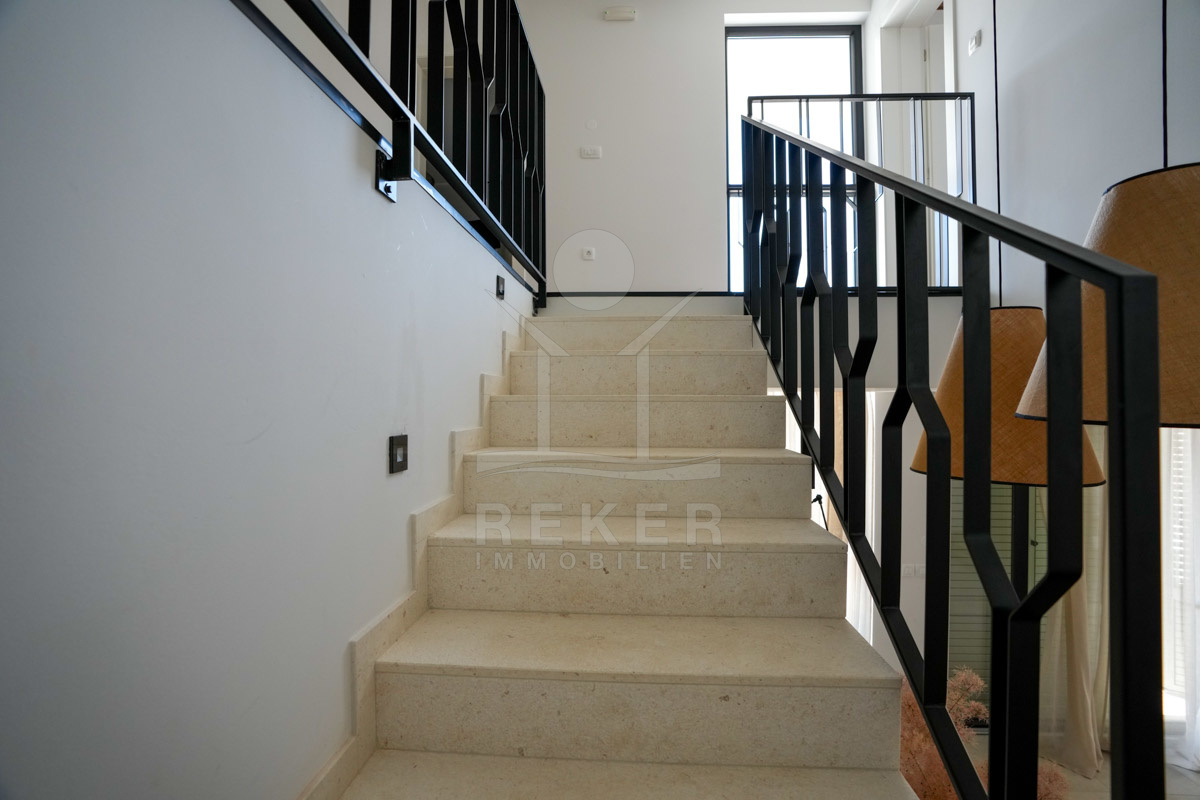Eine elegante Innentreppe führt Sie nach oben, wo drei Schlafzimmer, zwei Bäder und ein Schlafzimmer mit begehbarem Kleiderschrank auf Sie warten. Genießen Sie den Ausblick auf das Meer und die schöne Umgebung von der Loggia und den Balkonen dieser Etage aus.