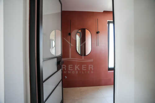 Die großzügige Terrasse, die über einen überdachten und einen nicht überdachten Bereich verfügt, erstreckt sich über insgesamt 34,39 m² und bietet einen atemberaubenden Blick auf den Garten. Der Pool und die Außendusche bieten an heißen Tagen eine erfrischende Abkühlung. Die Outdoorküche mit Grill lädt die Bewohner dazu ein, gemeinsame Stunden mit ihren Liebsten oder Ihren Gästen zu verbringen. Diese Terrasse ist der ideale Ort, um gemeinsam im Freien die Zeit zu genießen und unvergessliche Momente zu erleben.