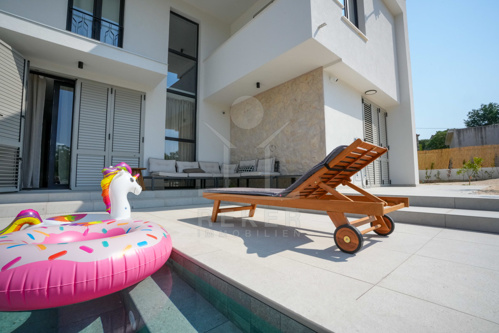Die exklusive Villa befindet sich auf einem großzügigen Grundstück von 1.000 m², das mit einem modern gestalteten Garten umgeben ist und vollständig umzäunt ist, um maximale Privatsphäre zu gewährleisten. Das Gebäude erstreckt sich über 2 Etagen, bietet 162 m² Wohnfläche und wurde im Jahr 2024 als Neubau errichtet. Fußbodenheizung ist in allen Räumen vorhanden und für den Anschluss einer Wärmepumpe vorbereitet. Die Villa ist auch für die Installation von Solarmodulen und EV-Ladegeräten vorbereitet. Der Pool verfügt derzeit über keine Heizung, aber die Installation ist vorbereitet.