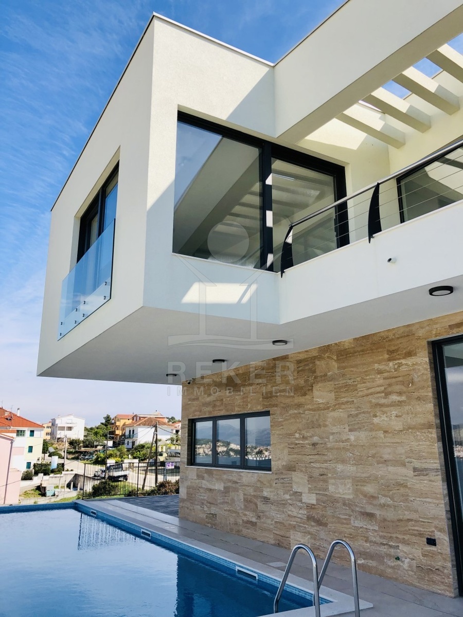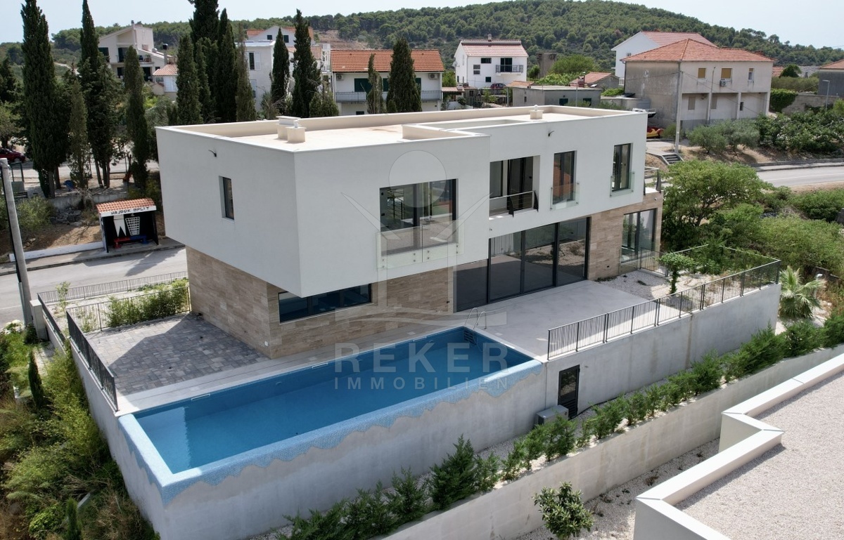 Die Neubau Villa liegt in einer ausgezeichneten Lage in Okrug Donji, nur 110 Meter vom Meer entfernt. Hier können Sie das Privileg genießen, direkt am Meer zu wohnen und von atemberaubenden Ausblicken auf das glitzernde Wasser der Adria umgeben zu sein. Die Villa bietet Ihnen modernen Komfort und luxuriöse Annehmlichkeiten. Die Umgebung ist ruhig und idyllisch, ideal für entspannte Spaziergänge entlang der Küste oder erholsame Stunden am Strand. Die Lage ist auch sehr praktisch, da das Zentrum von Okrug Donji mit Restaurants, Geschäften und weiteren Annehmlichkeiten in der Nähe liegt. Diese Villa bietet Ihnen den perfekten Ort, um Ihren Traum vom mediterranen Lebensstil wahr werden zu lassen.