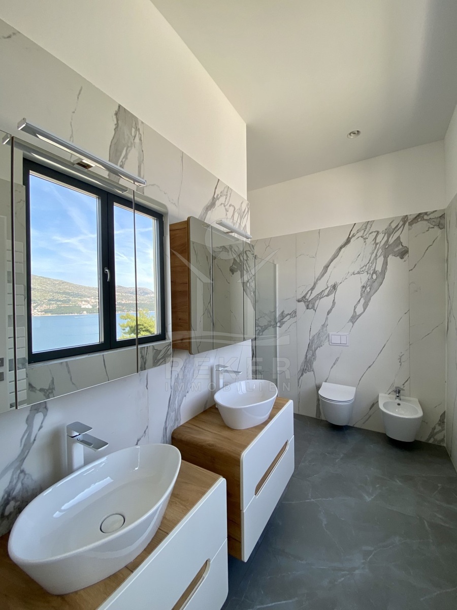 Die Neubau Villa befindet sich in Okrug Donji und besticht durch eine exzellente Lage nur 40 Meter vom Meer entfernt. Die Immobilie bietet Ihnen direkten Zugang zu einem der schönsten Strände der Region. Sie können hier den ganzen Tag am Strand verbringen, sich im türkisblauen Wasser erfrischen oder auf der Sonnenterrasse entspannen. Die Lage der Villa bietet eine ruhige und erholsame Umgebung, ideal für alle, die dem Trubel entfliehen möchten. Gleichzeitig ist das Zentrum von Okrug Donji in kurzer Entfernung zu erreichen, wo Sie eine Vielzahl von Restaurants, Bars und Geschäften finden. Diese Villa ist der perfekte Ort, um das mediterrane Lebensgefühl in vollem Umfang zu genießen.