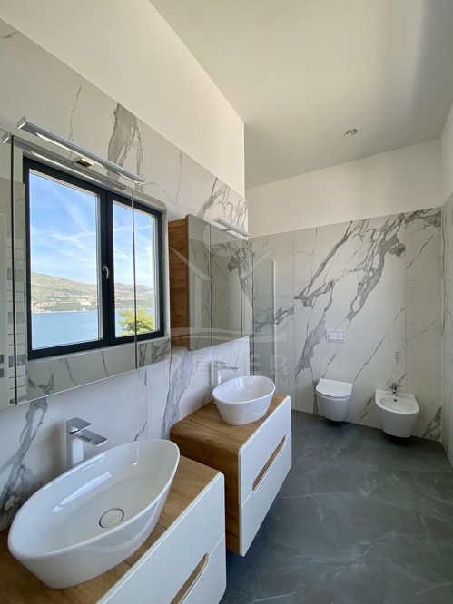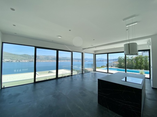 Das Anwesen liegt auf einem 728 m² großen Grundstück und ist von einer imposanten Betonmauer umgeben. Mit einer Ausrichtung nach Norden und nur einen Steinwurf vom Strand entfernt, bietet sie Ihnen einen unvergleichlichen Blick auf das Meer. Das zweistöckige Gebäude erstreckt sich über eine Fläche von 326 m² und wurde im Jahr 2022 erbaut. Es verfügt über einen Untergeschoss und für die Warmwasserversorgung wurde eine umweltfreundliche Luftwärmepumpe installiert.t. Die Villa ist mit 120x240 cm Keramikfliesen, Holzböden, rahmenlosen Innentüren und großen Fensterfronten ausgestattet. Mit einem Garagenplatz für 2 Autos haben Sie immer einen sicheren Parkplatz zur Verfügung.