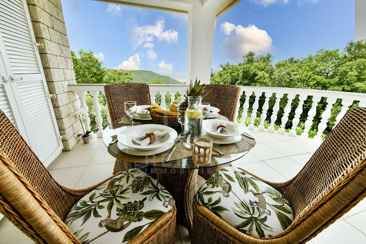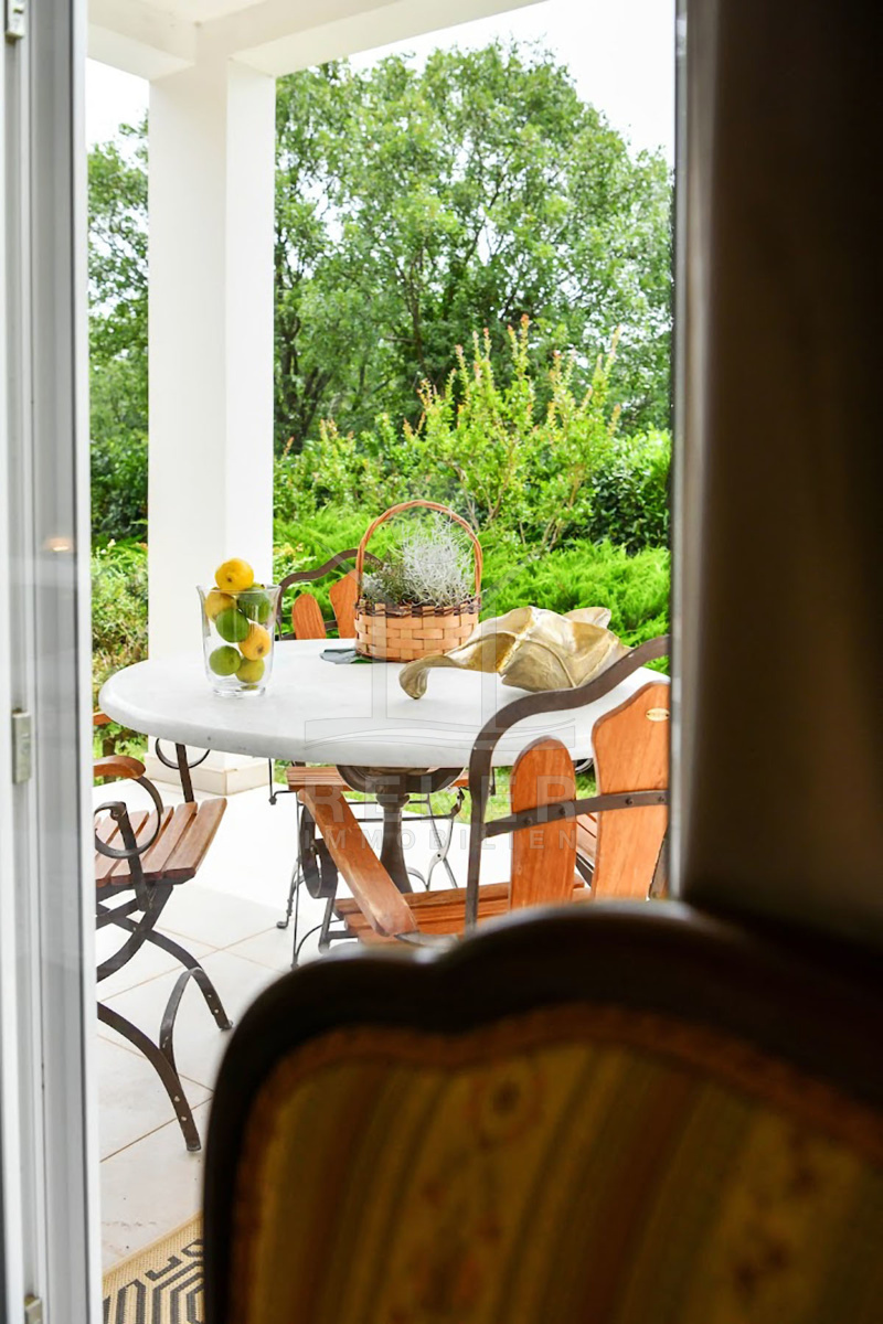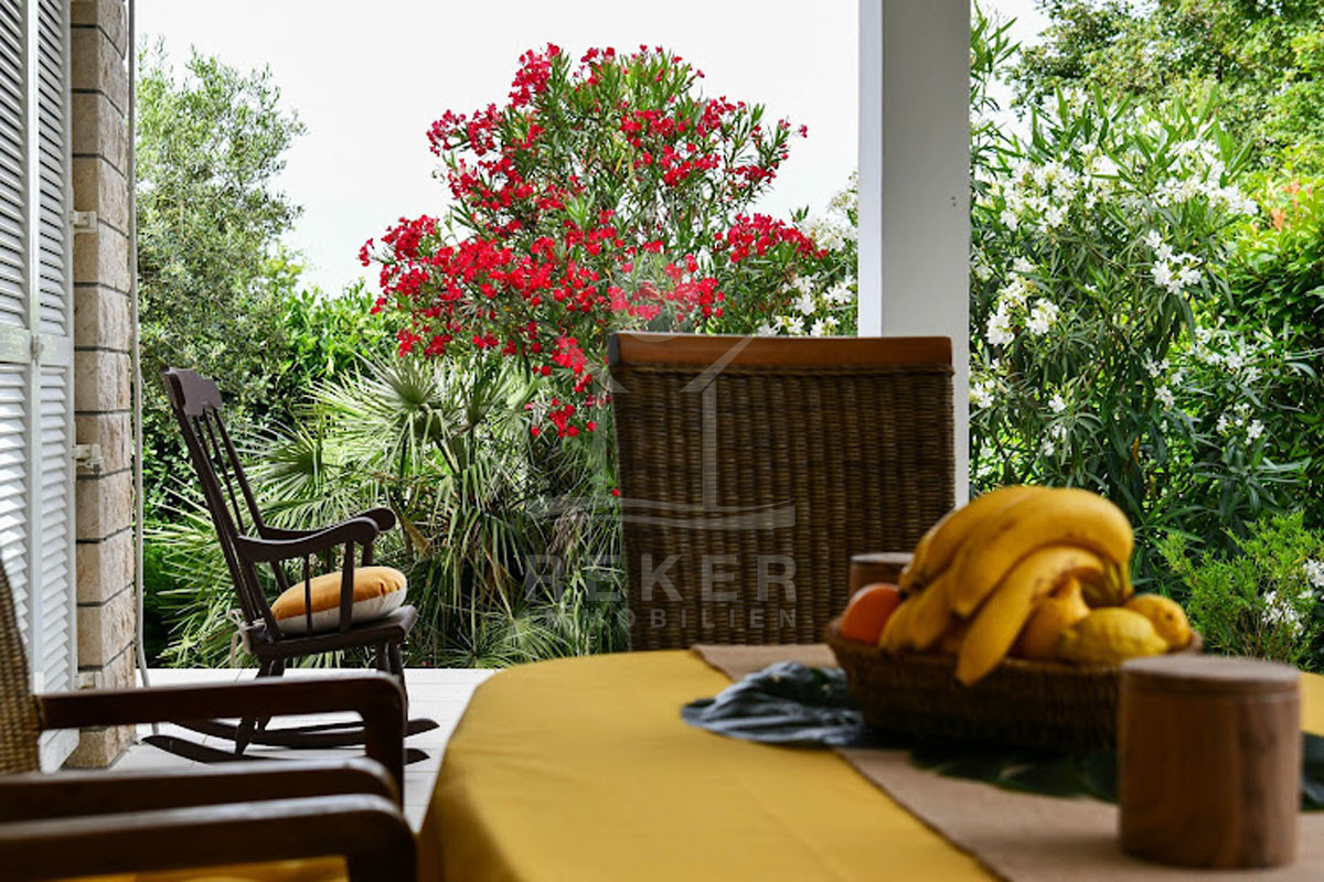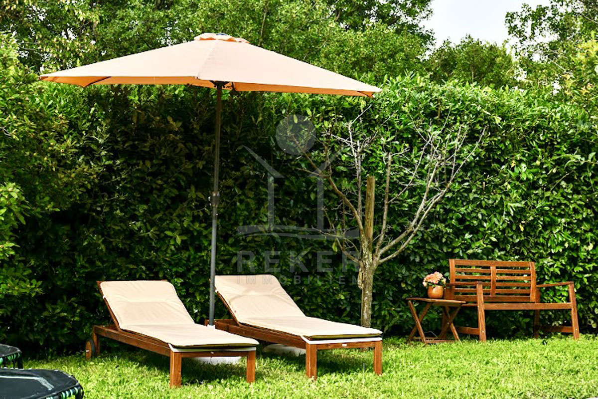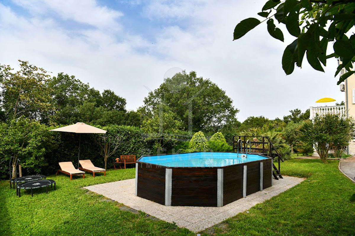 Die überdachten Terrassen im Außenbereich sowie die Balkone bieten den Bewohnern viele Möglichkeiten, das milde Klima zu genießen. Der Garten lädt zu gemütlichen Stunden ein, egal ob beim Entspannen am Aufstellpool oder beim Zubereiten von Köstlichkeiten am traditionellen Grill. Diese Villa ist ein Ort der Entspannung und Erholung, umgeben von einer grünen Atmosphäre und reichlich Platz für unvergessliche Momente.