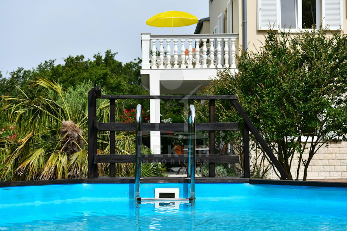 Die schöne Villa liegt in der malerischen Kvarner Bucht in Crikvenica und bietet einen herrlichen Blick auf das glasklare Meer. Obwohl das Meer und das Zentrum 3 km entfernt sind, sind sämtliche Einrichtungen wie Restaurants, Geschäfte und Apotheken gut erreichbar. Crikvenica ist nur 6 Fahrstunden von München entfernt und gilt als einer der beliebtesten Urlaubsorte in der Kvarner Bucht. Die Riviera erstreckt sich über 8 km entlang der Küste und besticht durch ihren Flair und Charme. Der goldgelbe Sandstrand "Gradska Kupaliste", ausgezeichnet mit der "Blauen Flagge", ist ein absolutes Highlight. Crikvenica ist ideal für Familienurlaub, mit flachen Stränden und zahlreichen Freizeitmöglichkeiten. Abends laden die Restaurants, Bars und Tavernen zu einem kulinarischen Erlebnis ein und die Uferpromenade zu romantischen Spaziergängen. Die Villa bietet nicht nur einen Wohntraum, sondern auch ein Stück vom Paradies mit grüner, ruhiger und schöner Naturlandschaft als Ihr neues Zuhause. Freuen Sie sich auf entspannte Tage in diesem einmaligen Wohlfühlort.