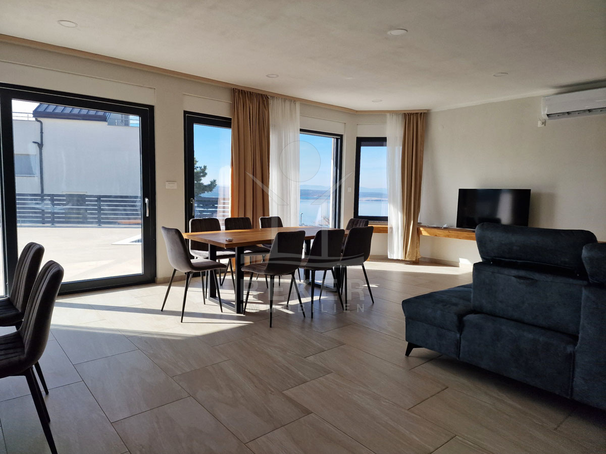 Die interne Treppe führt Sie ins Obergeschoss, wo vier weitere Schlafzimmer mit jeweils eigenem Bad auf Sie warten. Ein Abstellraum und eine Waschküche sorgen für zusätzlichen Komfort. Der Balkon, der um die Villa verläuft, bietet einen herrlichen Blick auf das Meer und die Insel Krk von beiden Etagen aus.