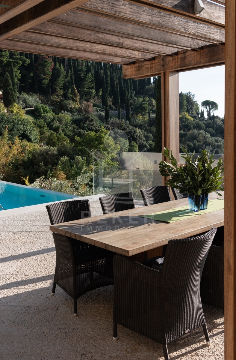 Das Anwesen erstreckt sich über ein beneidenswerte 1.200 m² großes Hanggrundstück, umgeben von üppigem Grün und authentischen Obst- und Zitrusbäumen, die dem Anwesen seinen mediterranen Charme verleihen. Die Villa von malerischen mediterranen Gärten begleitet und mit einheimischen Pflanzen gesäumt. Ein privater Parkplatz, gesichert durch Steinmauern und einen Sicherheitszaun, rundet das großzügige Angebot dieser exquisiten Immobilie ab.