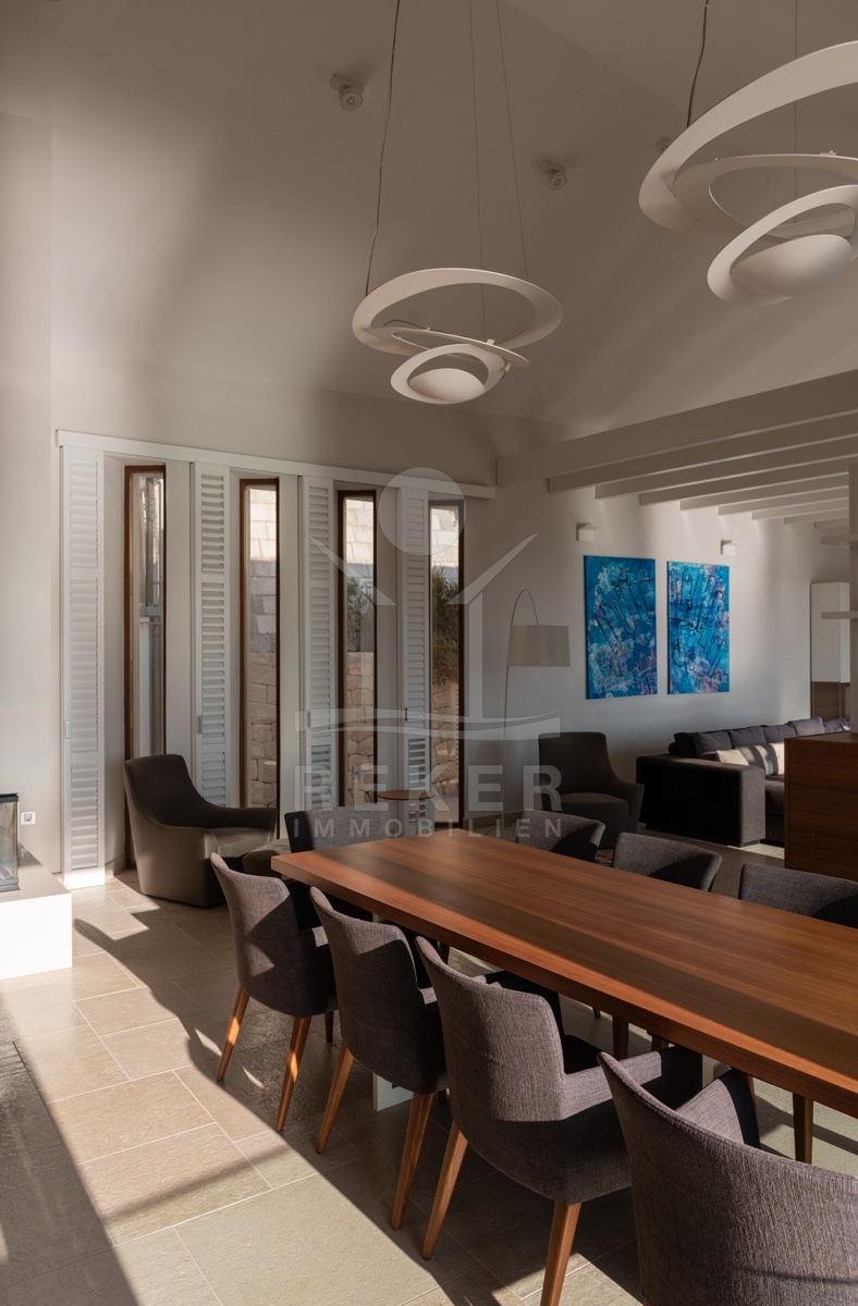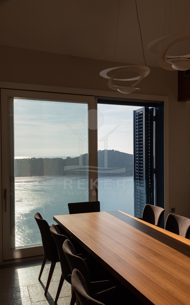 Die beeindruckende Steinhausvilla in der historischen Stadt Dubrovnik bietet nicht nur außergewöhnlichen Wohnraum auf drei Etagen, sondern auch einen atemberaubenden Panorama-Meerblick. Das Erdgeschoss dominiert mit Glaswänden und einem offenen Wohn-, Ess- und Küchenbereich, der ein Gefühl von Weite und Licht vermittelt. Insgesamt beherbergt die Villa 7 Zimmer, darunter 4 geräumige Luxusschlafzimmer, die mit eigenen luxuriösen Badezimmern ausgestattet sind. Ein Weinkeller und ein Ruheraum mit einer finnischen Sauna bieten den perfekten Rückzugsort für Entspannung und Genuss.