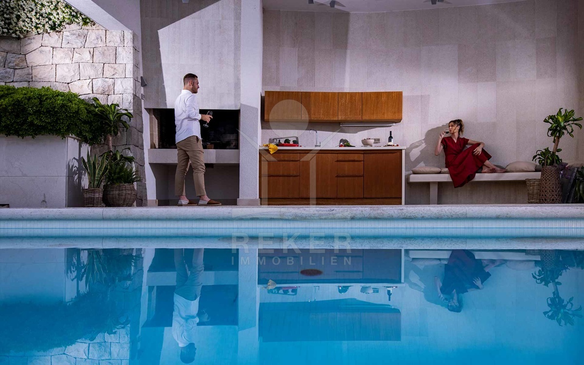 Die Steinhausvilla bietet von jeder Ecke atemberaubende Ausblicke auf das glitzernde Meer, die malerische Insel Lokrum, die beeindruckenden Stadtmauern von Dubrovnik und den alten Hafen. Mit insgesamt vier Terrassen, die zu jedem Raum führen, und einem exquisiten Swimmingpool mit spektakulären Ausblicken, wird der Außenbereich zu einem wahren Rückzugsort. Egal, ob Sie entspannen oder unterhalten möchten, dieser Außenbereich verspricht pure Freude und unvergessliche Momente in einer der schönsten Lagen Kroatiens.