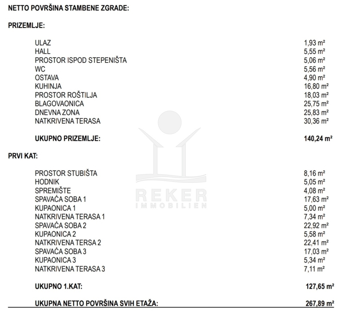 Auf zwei Ebenen, Erdgeschoss und 1. Obergeschoss, stehen Ihnen 267 m² Nettowohnfläche zur Verfügung. Im Erdgeschoss erwartet Sie ein großes Wohnzimmer mit Küche sowie ein WC. Im Obergeschoss sind drei Schlafzimmer geplant. Jedes Zimmer verfügt über ein eigenes Bad. Eine große Terrasse ergänzt diese Etage. Die Aufteilung trennt den Wohnbereich klar von den privaten Zimmern. Das sorgt für Komfort im Alltag und macht das Haus auch für Aufenthalte mit Familie oder Gästen sehr interessant.