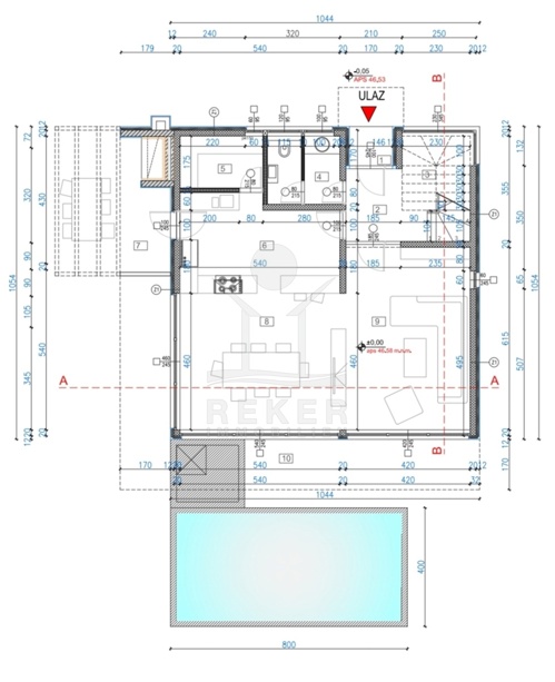 Das Grundstück umfasst 560 m². Vorgesehen ist ein Swimmingpool mit 8 x 4 m. Dazu kommt eine große Terrasse. Sie erweitert den Außenbereich sinnvoll und nimmt den Blick in die grüne Umgebung schön auf. So entsteht eine ausgewogene Verbindung aus Freiraum, Aufenthaltsqualität und Privatsphäre. Ein Plus für viele Lebensmodelle.