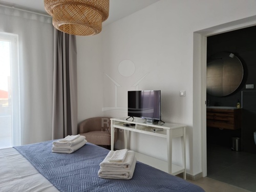 Im ersten Obergeschoss befinden sich zwei Zweizimmerwohnungen. Die erste Einheit bietet ein Bad und eine eigene Terrasse, praktisch für Gäste oder zur Vermietung. Die zweite Wohnung verfügt über zwei Bäder, ein zusätzliches WC und eine beeindruckende 100 m² große Terrasse mit freiem Meerblick. Viel Raum für Familie oder Besucher.