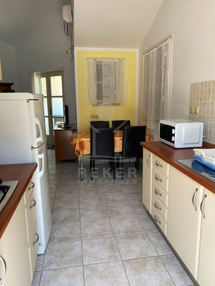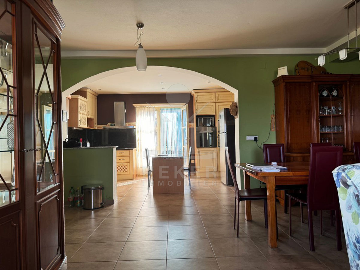 Im Erdgeschoss erwartet Sie eine Wohnung mit einer voll ausgestatteten Küche, einem großen Wohnzimmer, Esszimmer und 2 Schlafzimmern. Das Badezimmer bietet modernen Komfort, und der Ausgang zur Terrasse lädt zu entspannenden Stunden im Freien ein.