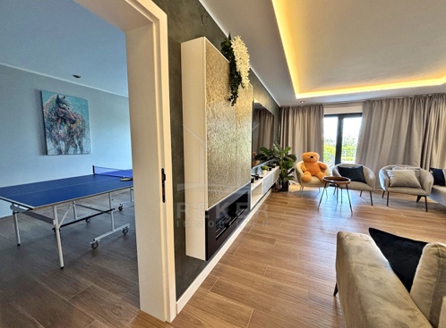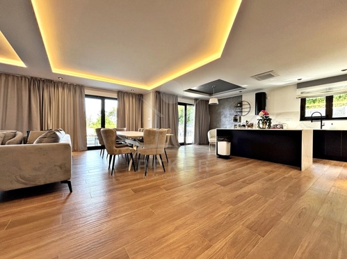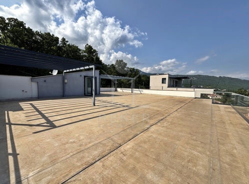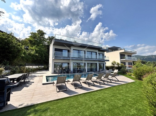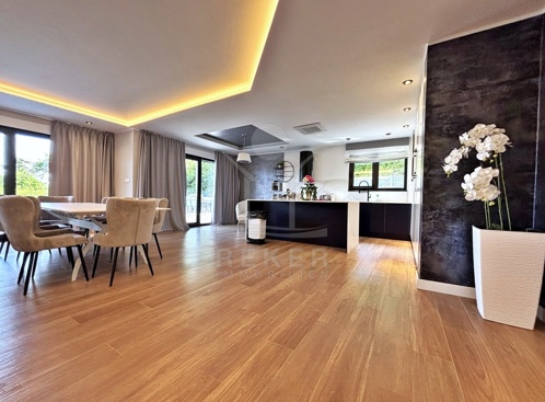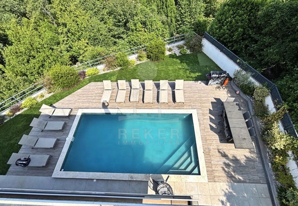 In den grünen Hängen oberhalb von Ika, ruhig und leicht zurückgezogen, liegt diese moderne Villa mit freiem Blick auf die Kvarner-Bucht. Wald säumt das Grundstück – Privatsphäre ist hier keine Frage. Trotzdem: In nur wenigen Minuten sind Sie am Meer. Diese seltene Lage schafft eine entspannte Balance aus Natur und Nähe zur Küste. Die Auffahrt ist bequem, der Rahmen stilvoll, die Atmosphäre gelassen.