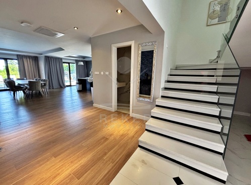 Drinnen erwartet Sie luftiger Komfort. Im Erdgeschoss fließt alles offen – Kochen, Essen, Wohnen. Daneben ein Spielzimmer oder einfach ein Ort für Gäste. Oben: fünf helle Schlafzimmer, jedes mit eigenem Bad und Balkon. Besonders stark: die große Dachterrasse mit offenem Blick aufs Meer. Durch die Südostausrichtung ist es hell – aber nie grell. Die Technik passt: Fußbodenheizung, Alufenster mit elektrischen Rollos, Klima. Und: Das Haus wird komplett eingerichtet übergeben – bezugsfertig und geschmackvoll.