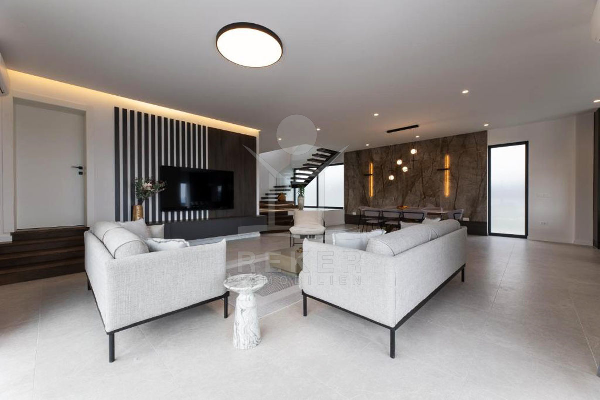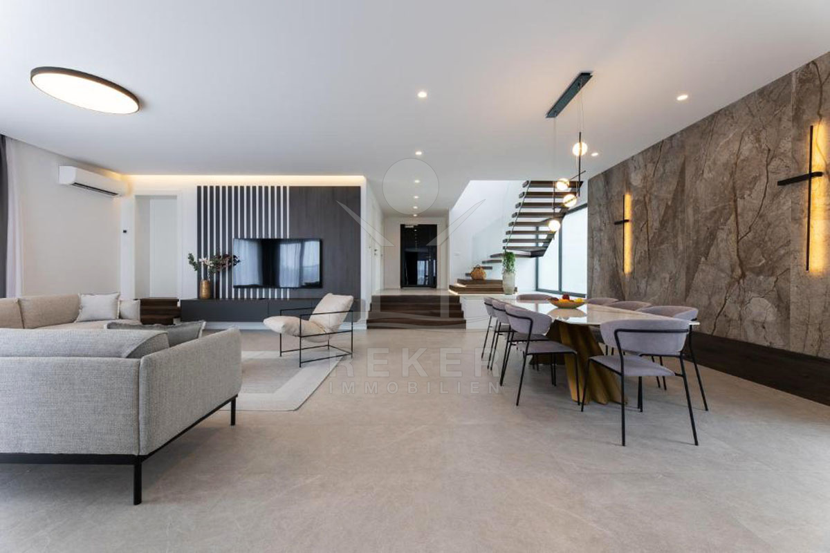 Das Anwesen thront auf einem großzügigen Grundstück von 1.013 m², das vollständig mit einem modernen Zaun und einer stilvollen Mauer umgeben ist, wodurch absolute Privatsphäre gewährleistet wird. Mit 330 m² Wohnfläche verteilt auf 2 Etagen bietet das im Jahr 2023 erbaute Anwesen hochwertige Bauweisen und erstklassige Materialien. Jeder Raum dieser Villa strahlt Eleganz und Komfort aus, um allen Ansprüchen gerecht zu werden. Das Anwesen bietet zudem einen privaten Parkplatz im Freien mit Platz für bis zu 5 Stellplätze, was zusätzlichen Komfort und Sicherheit für Sie und Ihre Gäste gewährleistet.