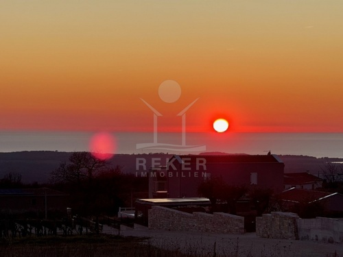 In ruhiger, attraktiver Lage von Kaštelir, nur 500 Meter vom Ortszentrum entfernt, erwartet Sie diese außergewöhnliche Villa in erhöhter Position mit weitem Meerblick und Südwest-Ausrichtung. Von hier aus blicken Sie über die Landschaft bis zur Küste. Das Meer erreichen Sie nach rund 5 Kilometern, die nächsten Strände nach etwa 7 Kilometern. Strom und Kanalisation sind bereits bis zum Haus geführt. Zwei Fahrzeuge parken Sie bequem in der integrierten Garage.