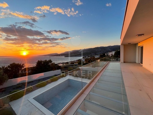 Das Erdgeschoss überzeugt mit einem großzügigen Wohnzimmer, einer modernen Küche, einem Esszimmer, einem Schlafzimmer, einem Badezimmer und einem separaten WC. Im Obergeschoss befinden sich das Hauptschlafzimmer, ein weiteres Badezimmer und ein Arbeitszimmer, von dem Sie auf eine großzügige Terrasse mit einem atemberaubenden Panoramablick auf das Meer gelangen. Hier können Sie entspannte Abendstunden verbringen und den Sonnenuntergang genießen.