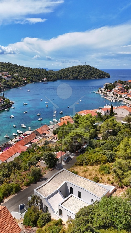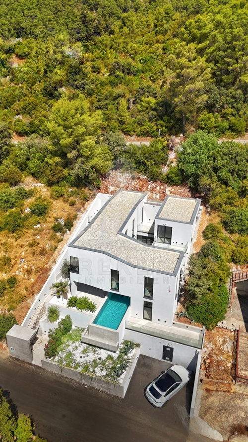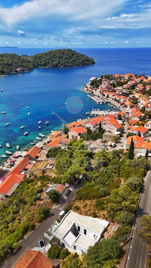 Die Platinum Villa befindet sich in erhöhter Position in einer ruhigen Bay an der Südseite der Insel Korčula. Sie genießen Privatsphäre, freie Ausblicke und kurze Wege. Das Meer ist rund 80 Meter Luftlinie entfernt. Die historische Stadt Korčula mit Fähr- und Katamaranverbindungen erreichen Sie nach etwa 25 bis 30 Autominuten. Zwei Stellplätze stehen auf Straßenniveau bereit. Eine Überdachung oder ein Tor kann bei Bedarf ergänzt werden.