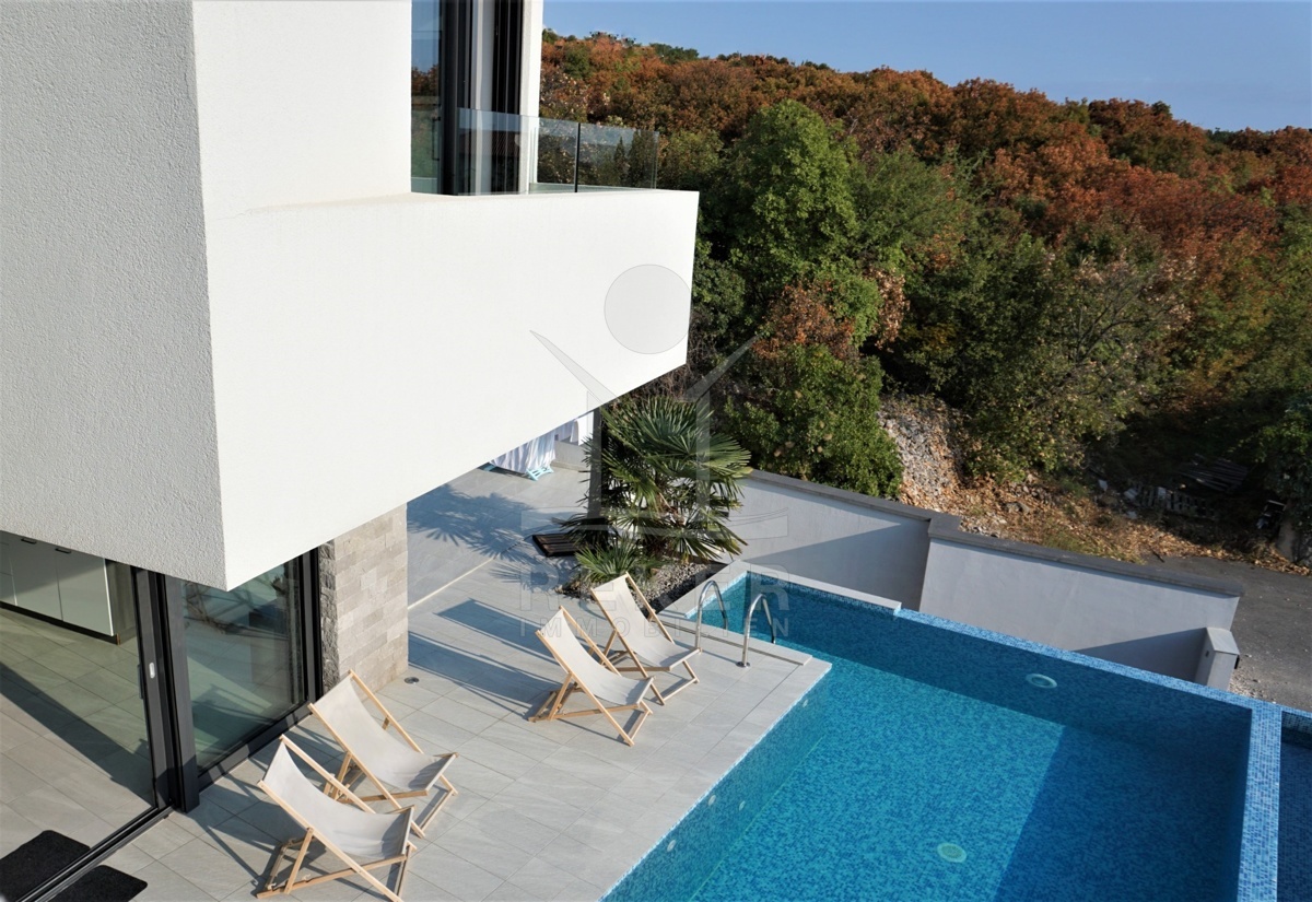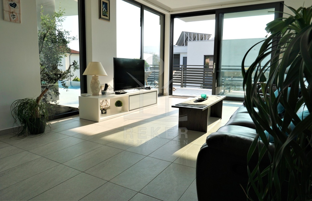 Die schöne Villa befindet sich in Kostrena, nur wenige Gehminuten vom Meer und den herrlichen Stränden entfernt. Umgeben von der malerischen Bucht Martinšćica und der Bucht von Bakar, bietet dieser alte Küstenort ein angenehmes mediterranes Klima und eine charmante Atmosphäre. Die gut ausgebaute Infrastruktur und die freundliche Gemeinschaft machen Kostrena zu einem idealen Ort für Einheimische und Besucher.