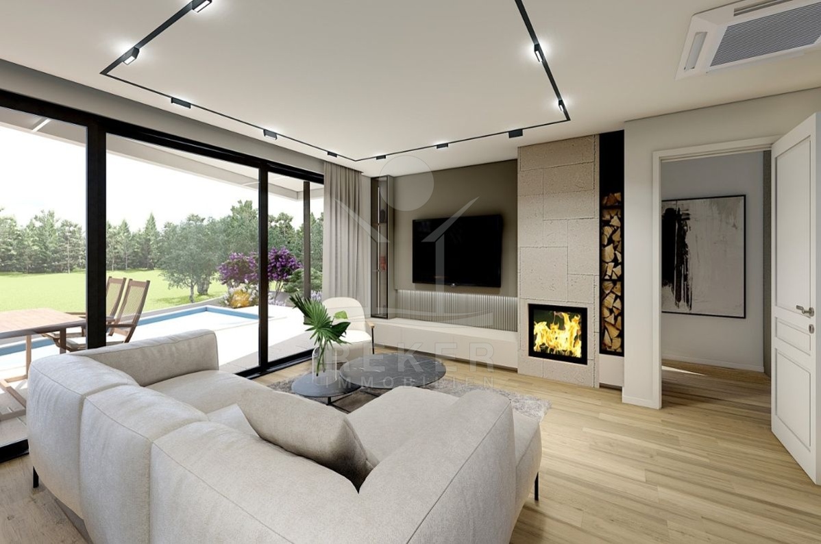 Die erstklassige Bauqualität und Ausstattung prägen den hochwertigen Gesamteindruck dieser Neubauvilla. Hinzu kommen luxuriöse Möbel, ein Kamin im Innenbereich, Klimaanlage und Wärmepumpe. So entsteht ein Haus, das Komfort und Qualität auf stimmige Weise verbindet.