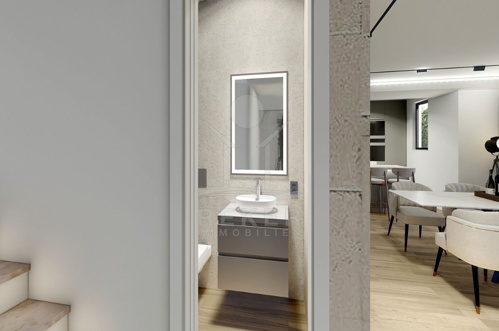 Im Erdgeschoss öffnet sich der Wohnbereich mit Wohnzimmer, Küche und Essbereich. Ein Schlafzimmer mit privatem Badezimmer, eine Waschküche, ein Abstellraum, ein Gäste-WC und der direkte Zugang zur überdachten Terrasse ergänzen diese Ebene. Im Obergeschoss stehen drei weitere Schlafzimmer mit Badezimmern, ein Ankleidezimmer und zwei Terrassen bereit.