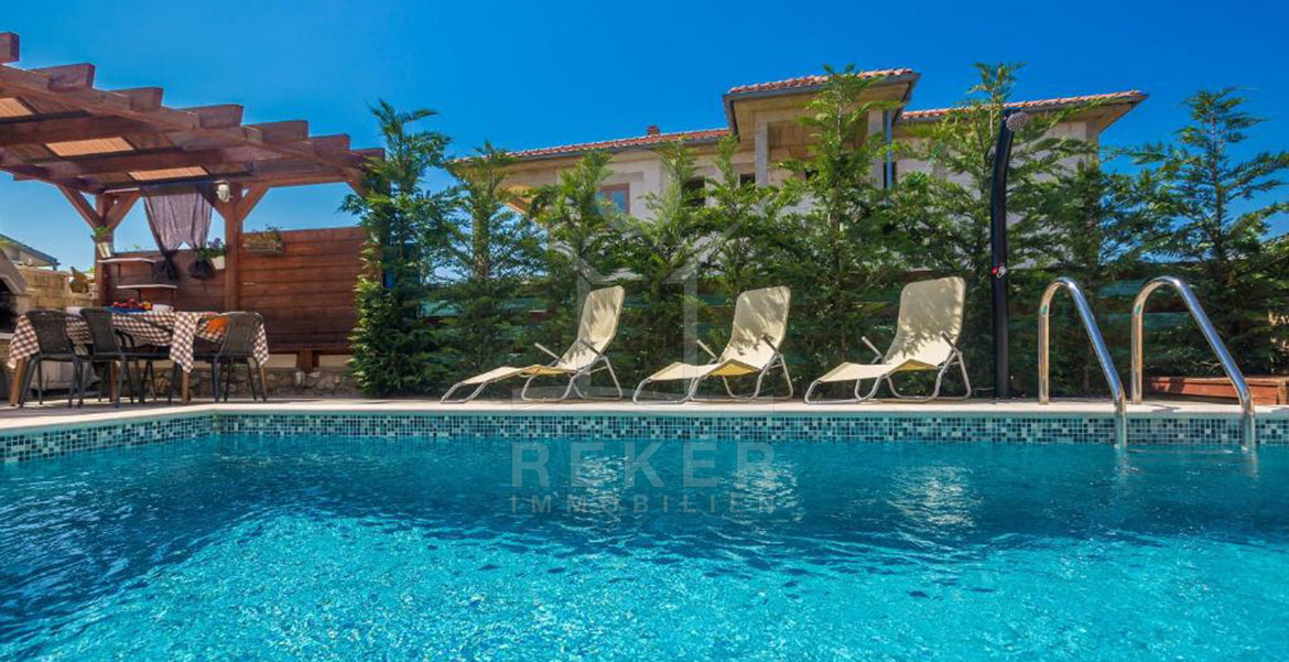 Die Villa mit besticht durch seine hervorragende Lage nahe Krk. Die Nähe zum Meer ermöglicht es, innerhalb weniger Minuten mehrere schöne Strände und Städte zu erkunden. Genießen Sie die Vielfalt an Restaurants und Cafés in der Umgebung, während der Yachthafen Punat und andere Sehenswürdigkeiten für Abwechslung sorgen. Die zentrale Lage bietet eine ausgezeichnete Anbindung an Freizeitmöglichkeiten und Unterhaltungsmöglichkeiten. Erleben Sie hier das mediterrane Lebensgefühl inmitten malerischer Küstenstädte und traumhafter Strände.